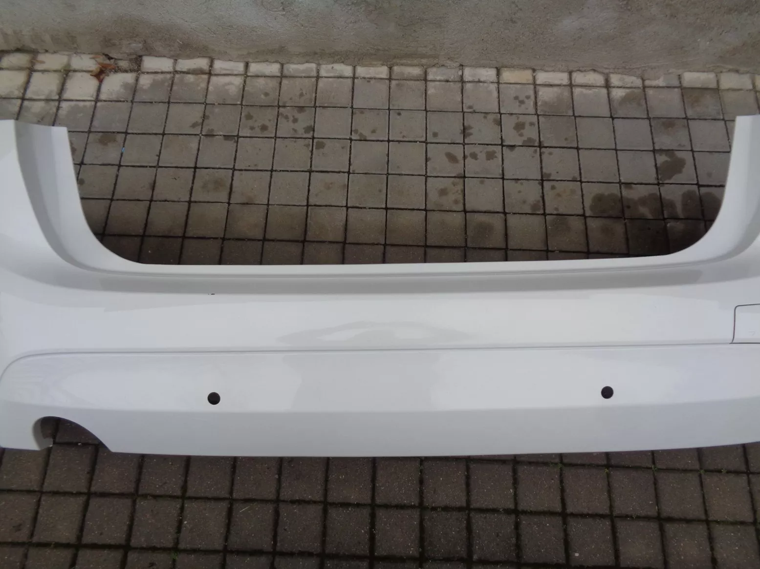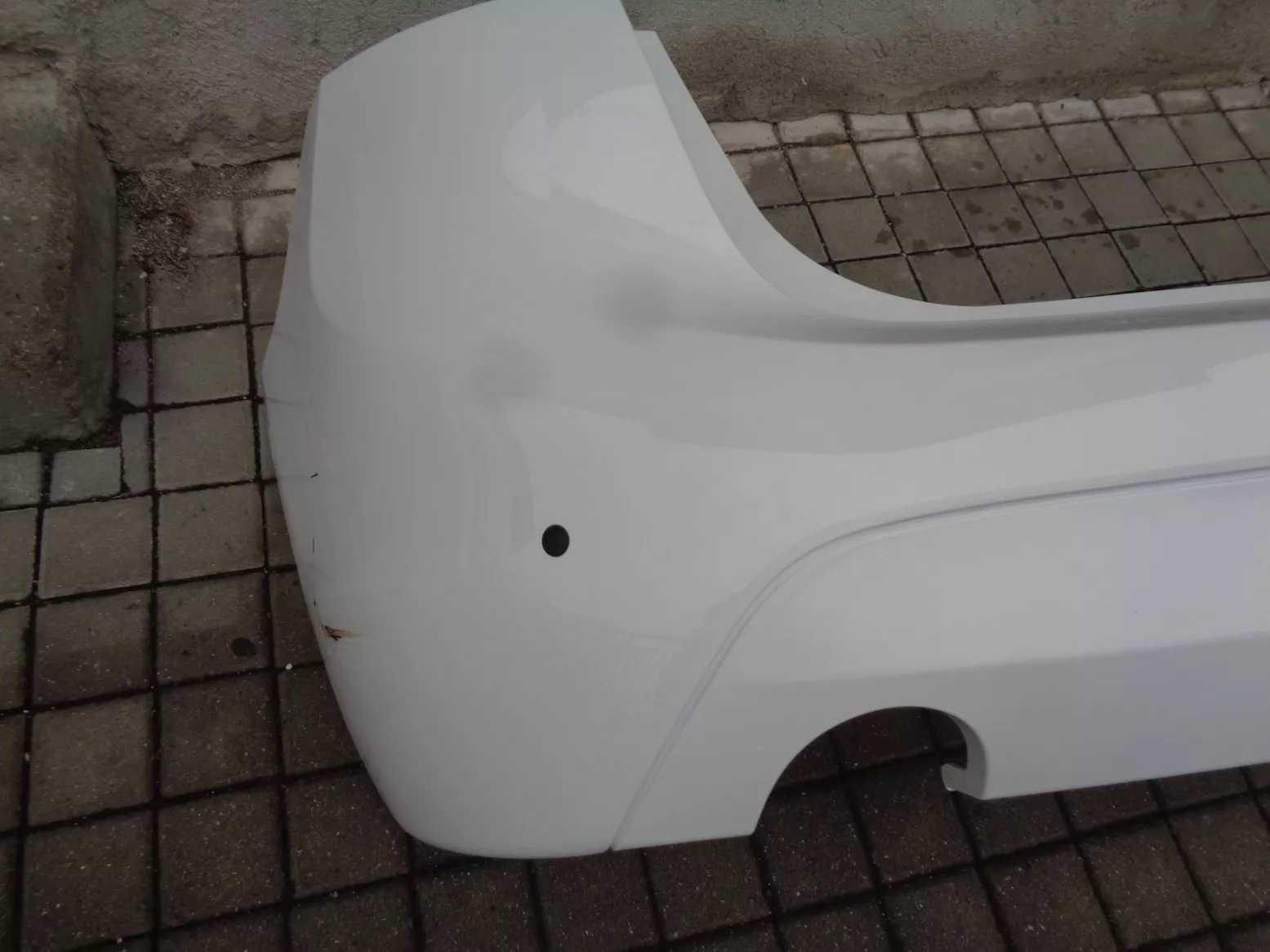 Zadní nárazník na BMW 2 F45, verze BASIS, otvory na PDC, 1 otvor na výfuk - pro modely 214-218D, 216i-218i. Odřený levý bok.