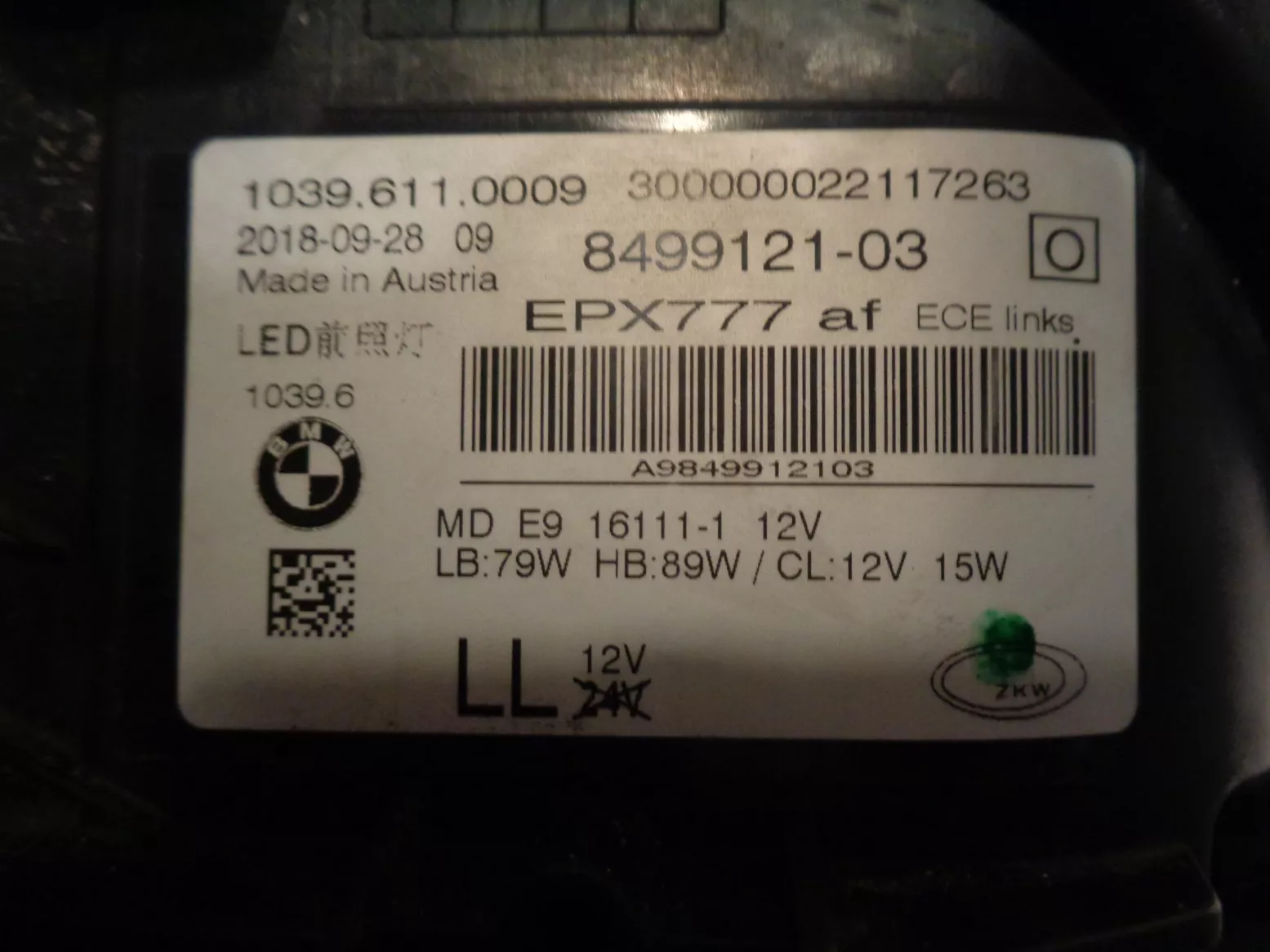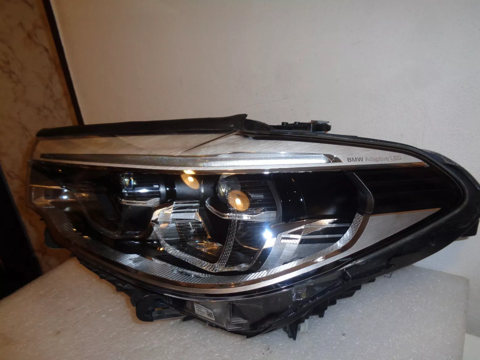 Levý LED adaptivní světlo (LED icon light) na BMW 5 G30/31, pěkný stav. Současné orig. číslo 63117214961.