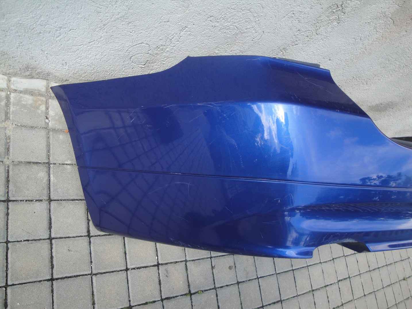 Zadní nárazník na BMW 3 E91, bez otvorů na PDC, barva montegoblau, lehké škrábance, žádná prasklina, poškozeny některá oka na boční držáky.
