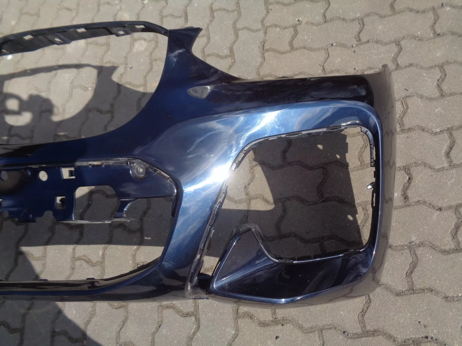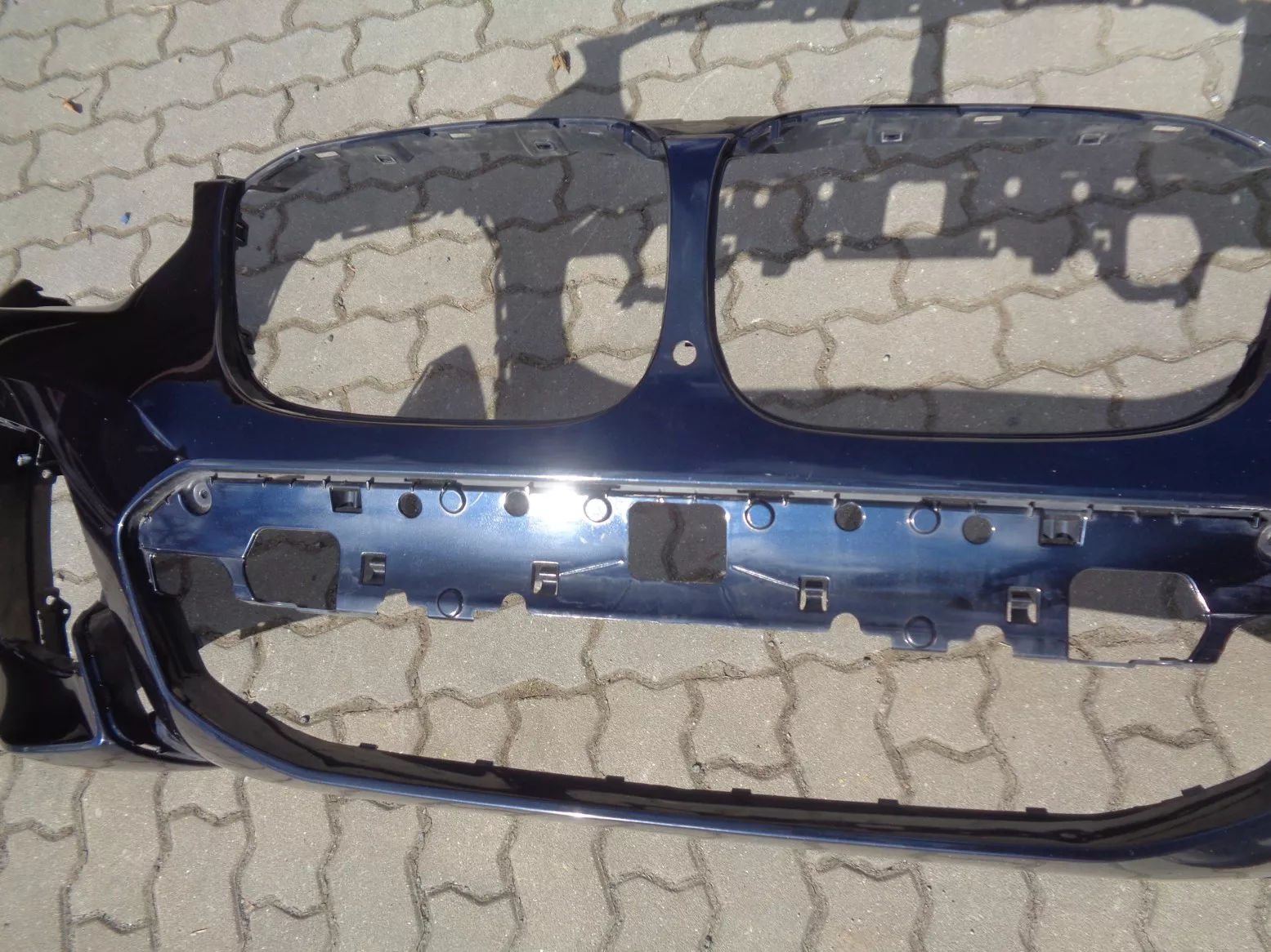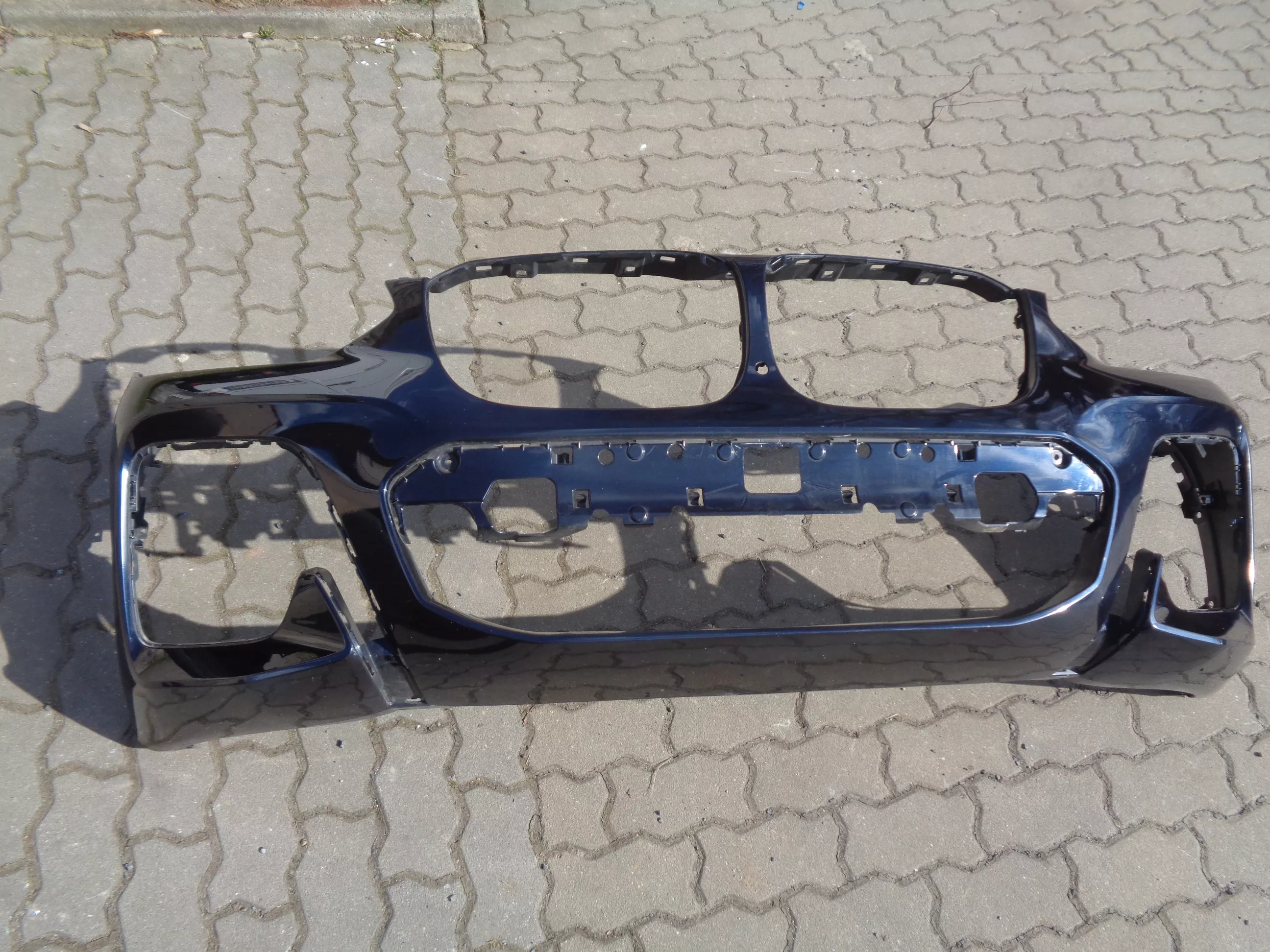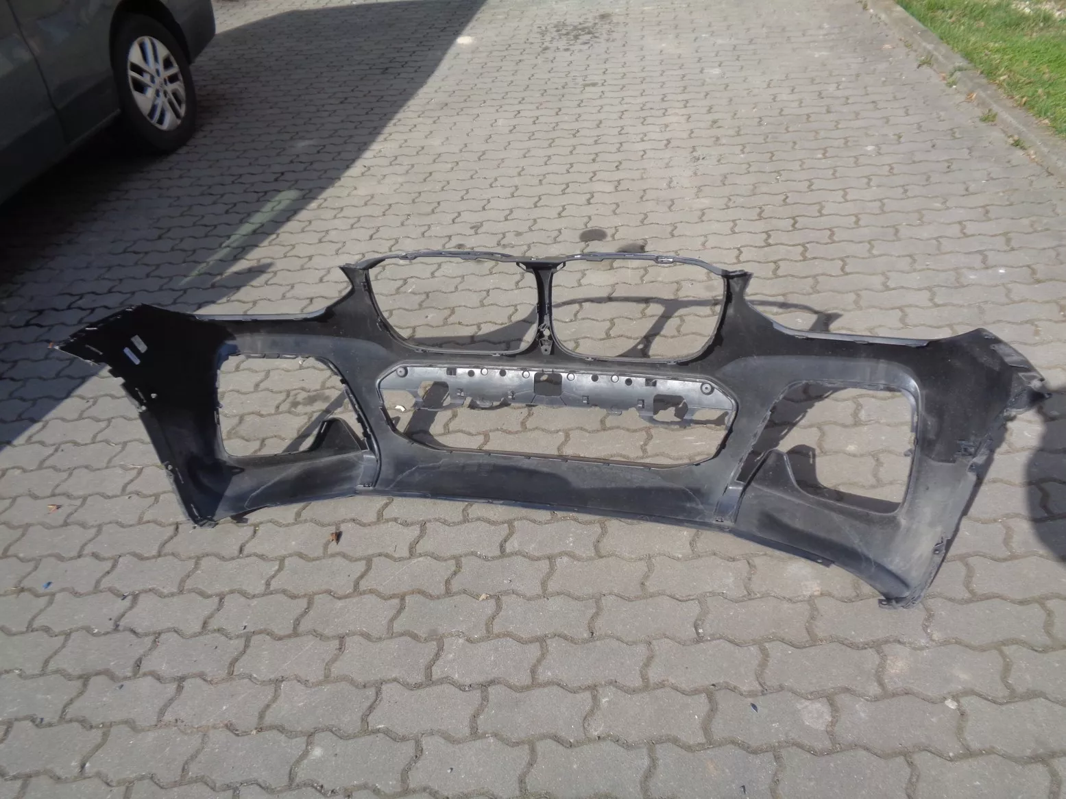 Přední nárazník na BMW X3 G01, barva Carbonschwarz, verze pro parkovací asistence plus (otvory na boční čidla a jedno uprostřed), perfektní stav, jen škrábnutý lak na levém boku. Současné originál číslo 51118091987.
