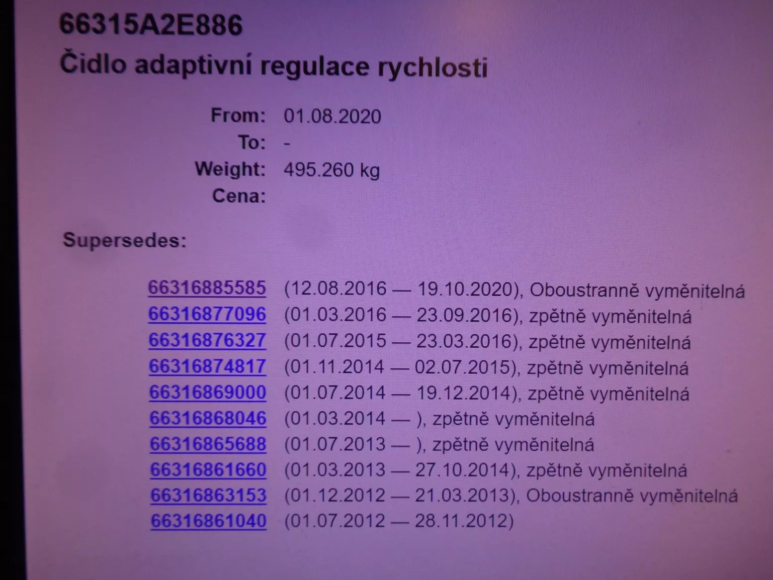 Čidlo adaptivní regulace rychlosti (radar sensor) pro vozy BMW 20/21/22/23 LCI, F30/31/32/33/34/36 +- LCI, F07/10/11 LCI, F06/12/13+-LCI, F01/02 LCI, F25/26/15/16. Současné originál číslo 66315A2E886, ostatní starší čísla na posledním obrázku.