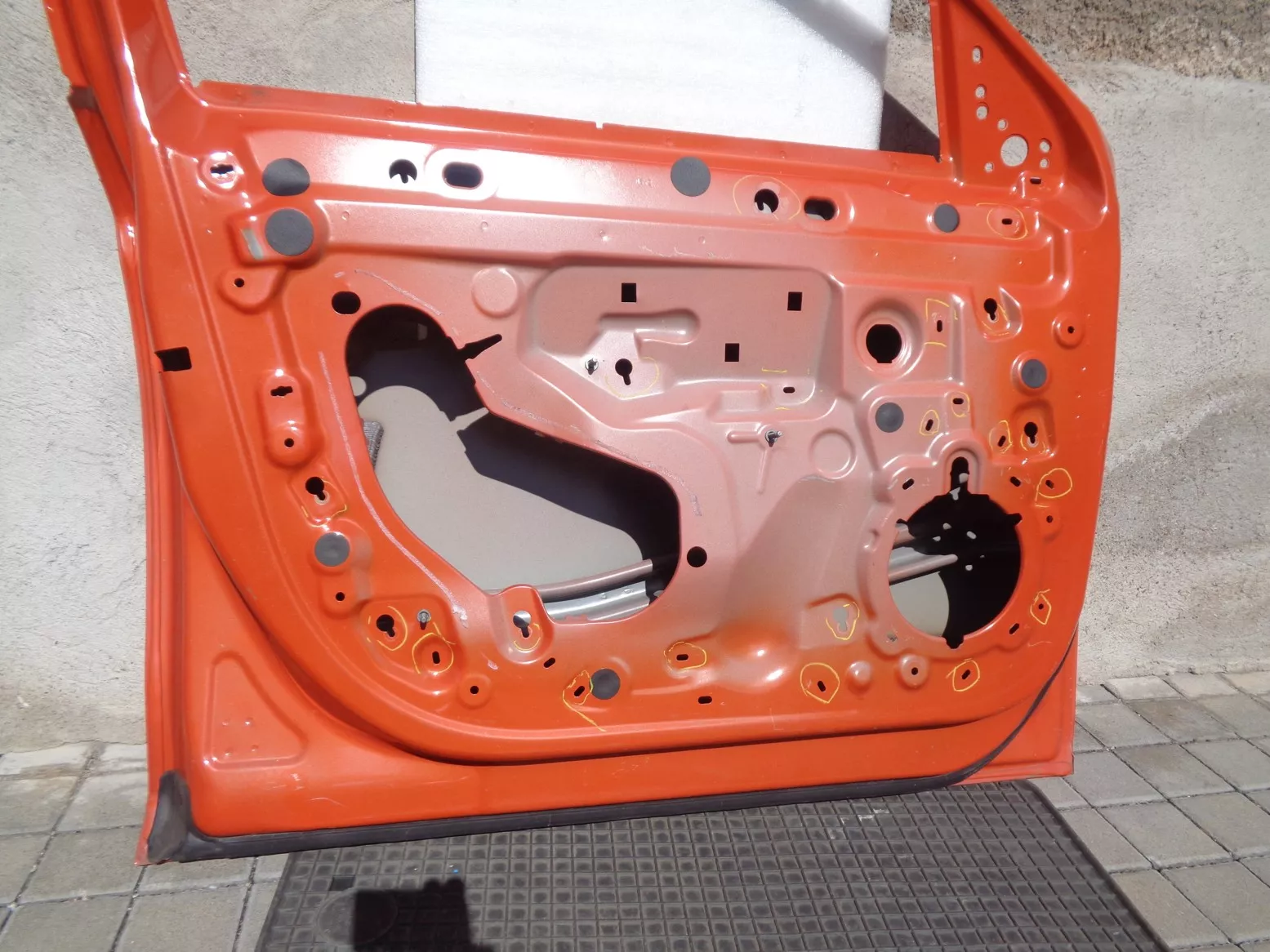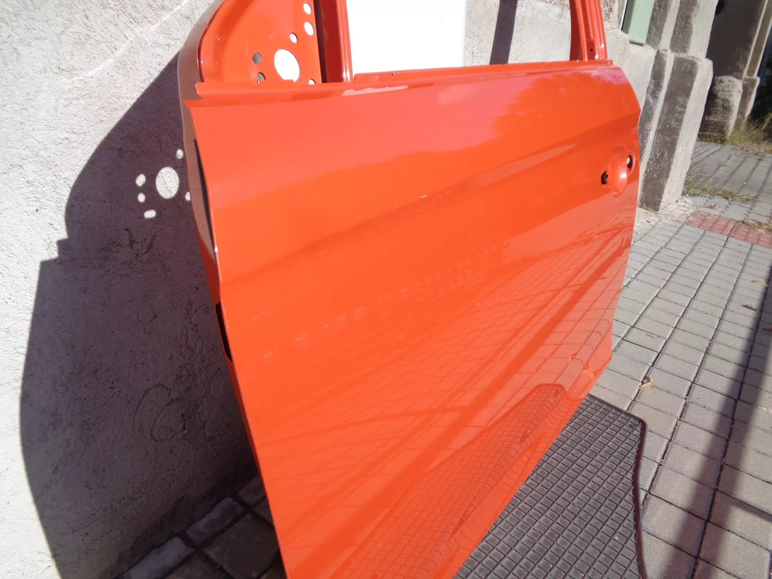 Levé přední dveře na opel corsa F, oranžová metalíza, pěkný stav, pouze škrábance laku.