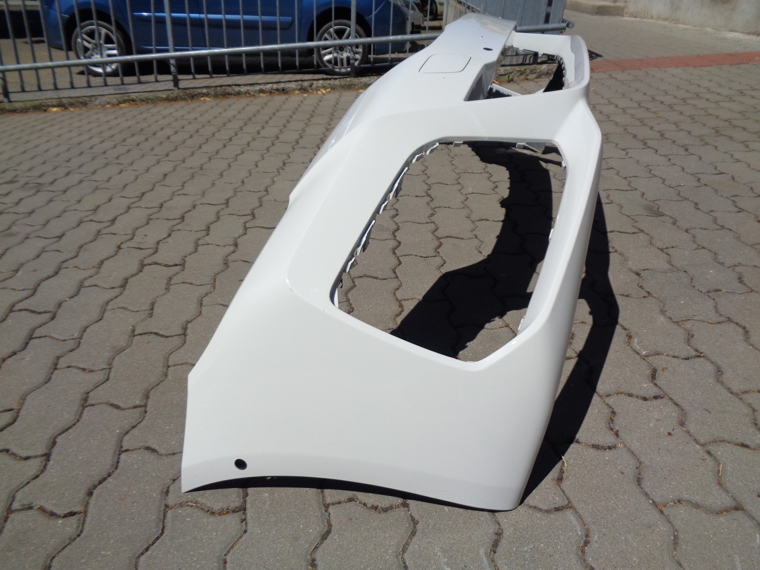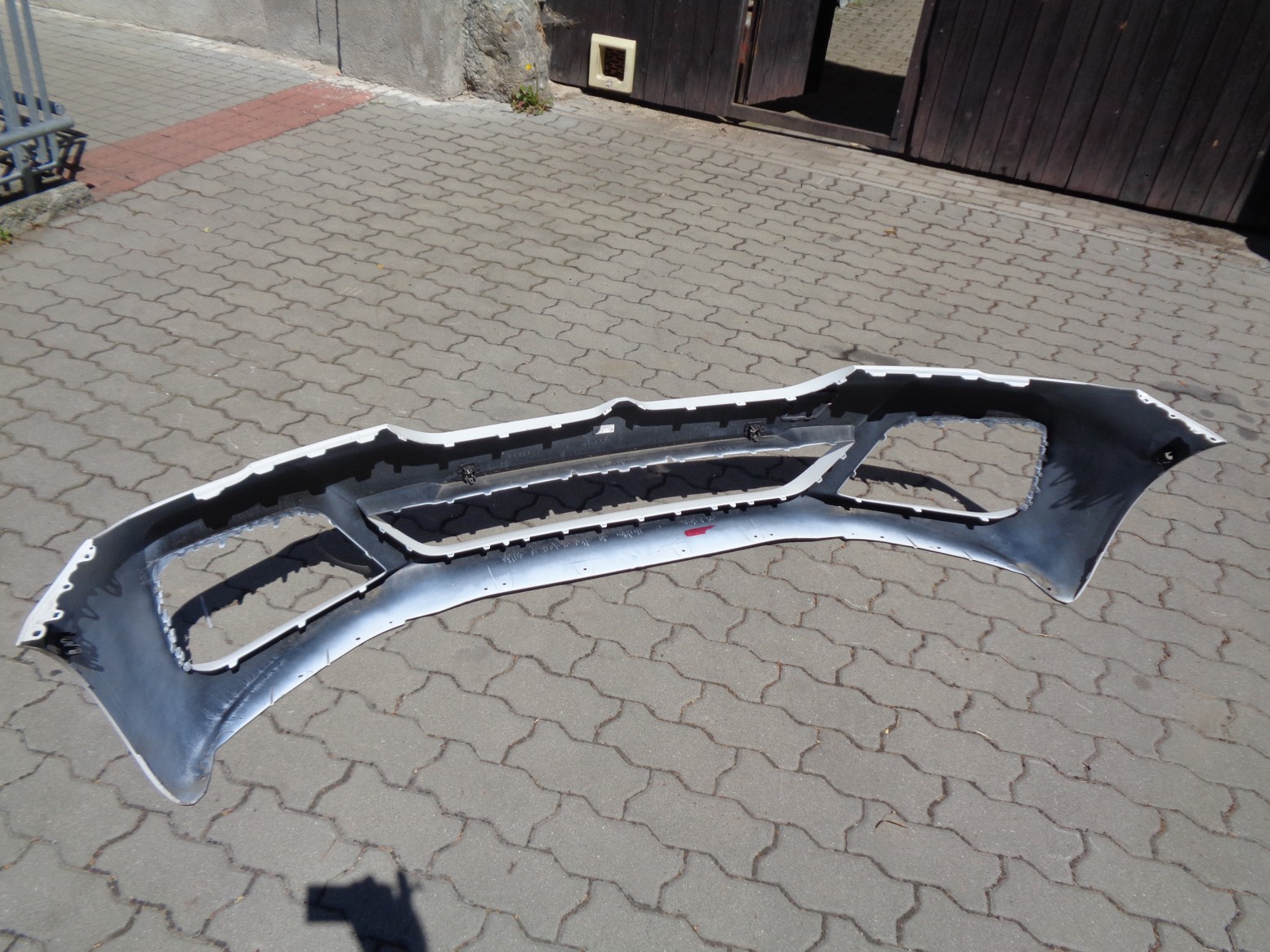Originál přední nárazník M-paket na BMW 5 G30 facelift, otvory na PDC a PMA, bílý, odřená hrana u levého průduchu, žádná prasklina ani promáčklina.