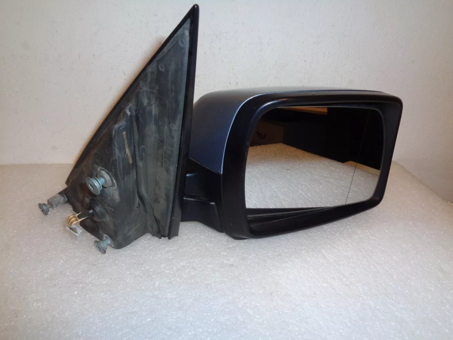 Originál pravé zrcátko na BMW X3 E83, paměti (3 piny), světle modrá barva krytu, perfektní stav!