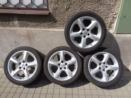 Originál ALU sada 7x17 is39, rozteč 5x110, obuto letními pneu 225/47 R17 91Y: 2x Conti na dojetí DOT 1105 a 2x Uniroyal vzorek 6-7mm DOT 1015, 2 kola mají lehké oděrky.