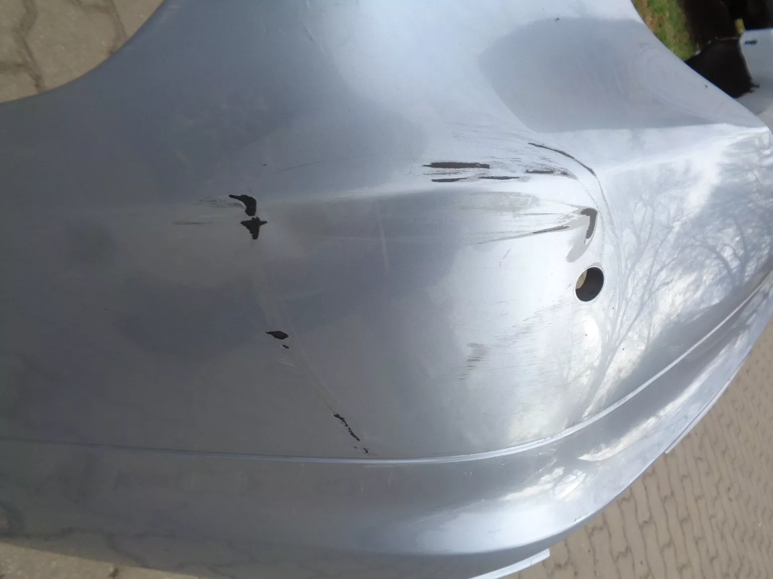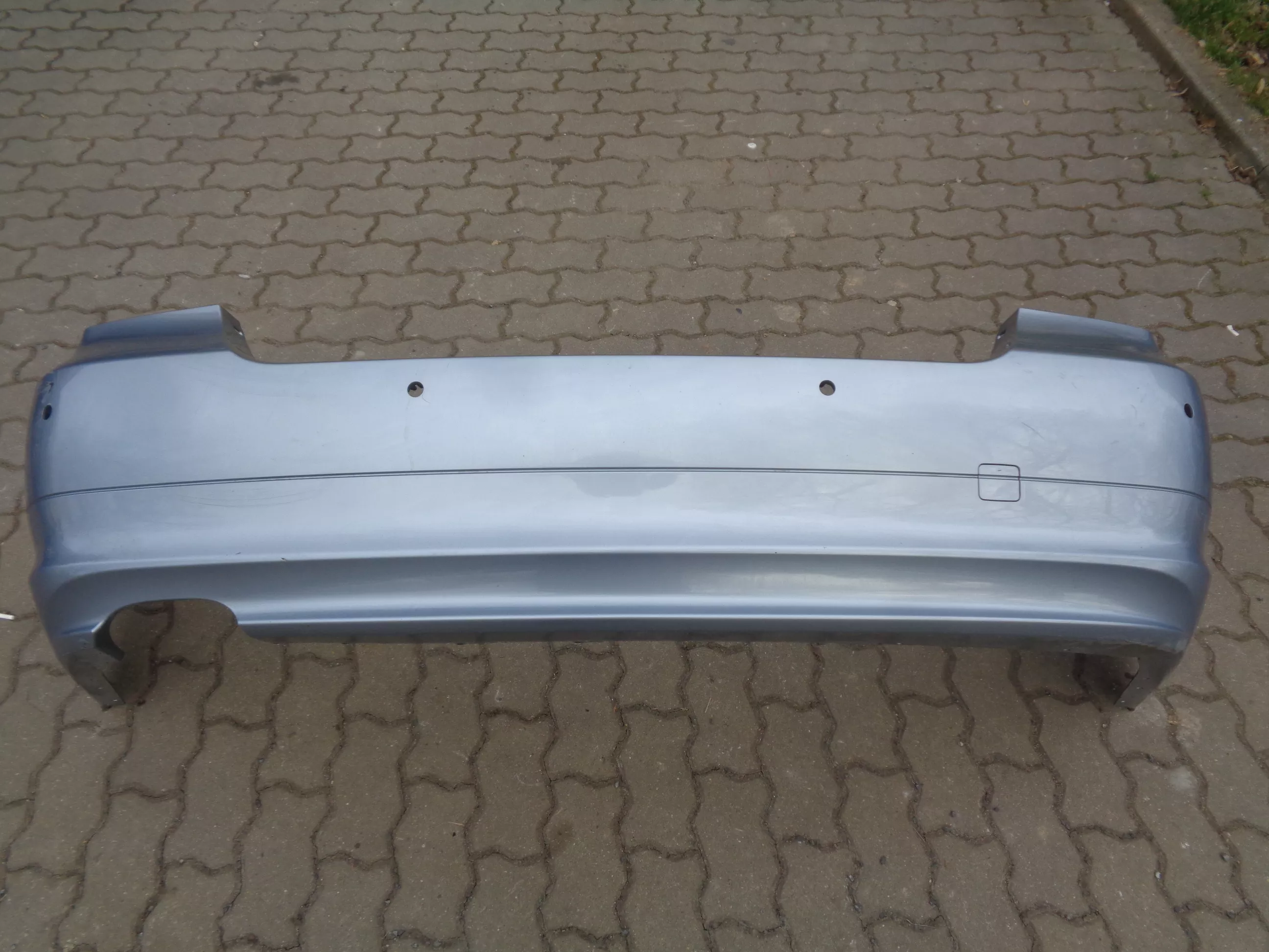 Zadní nárazník na BMW 3 E90 facelift, otvory na PDC, šedomodrý - Bluewater, odřený levý bok.
