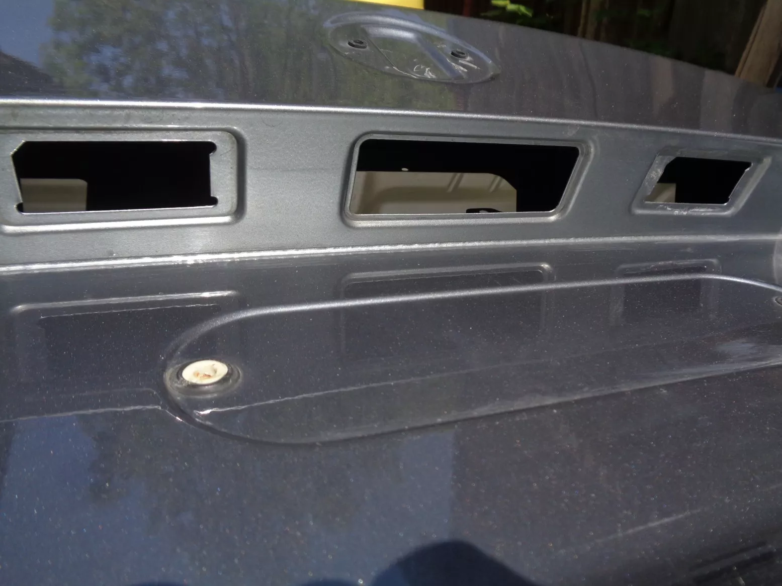 Zadní víko na BMW 5 E60 včetně faceliftu, šedá metalíza, pěkný stav, jen malý důlek pod zadní hranou, absolutně bez koroze!