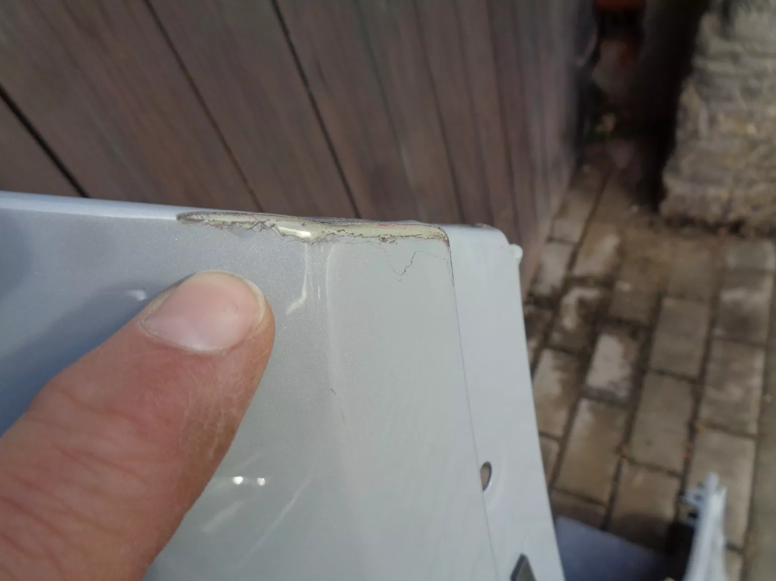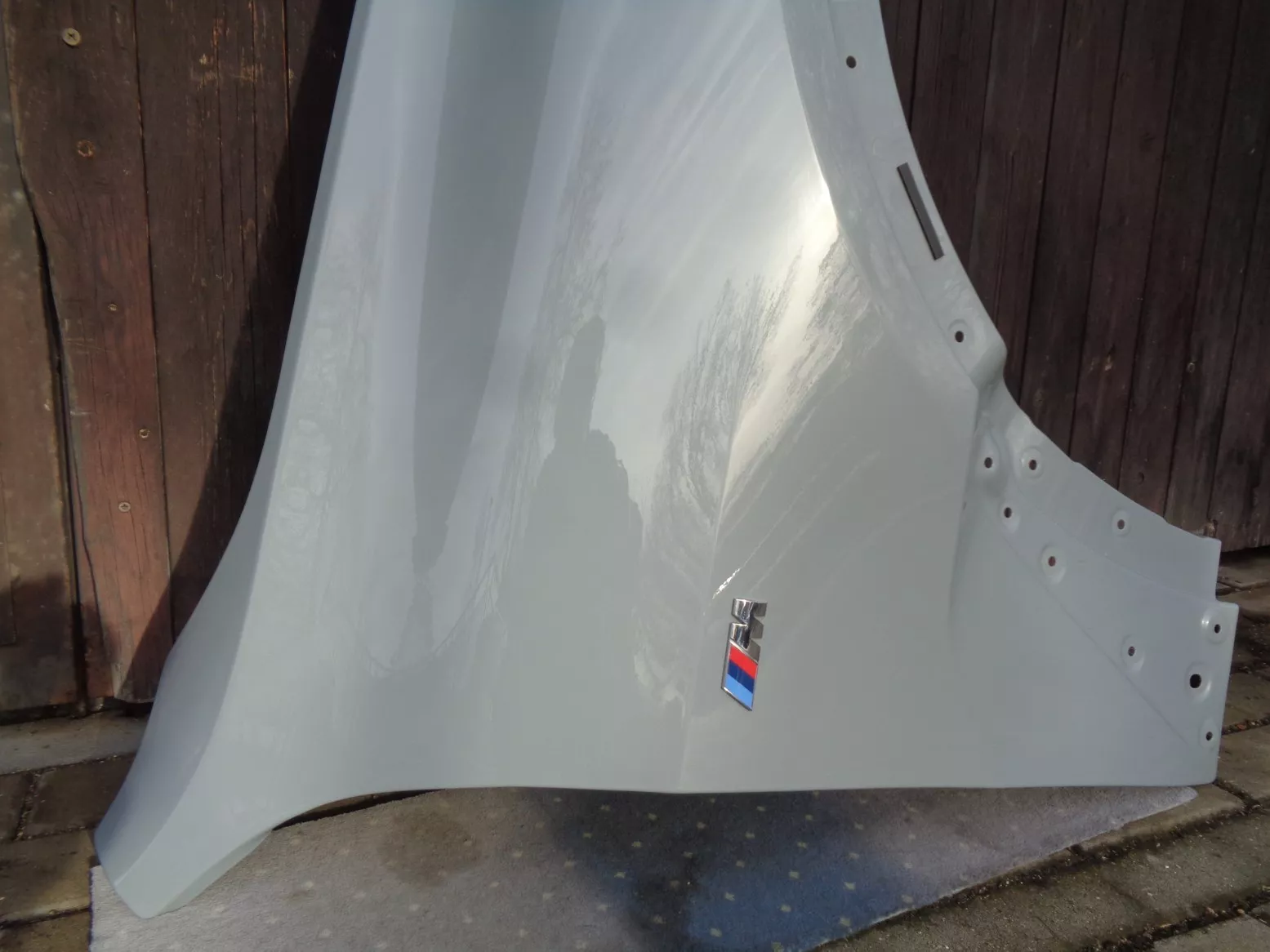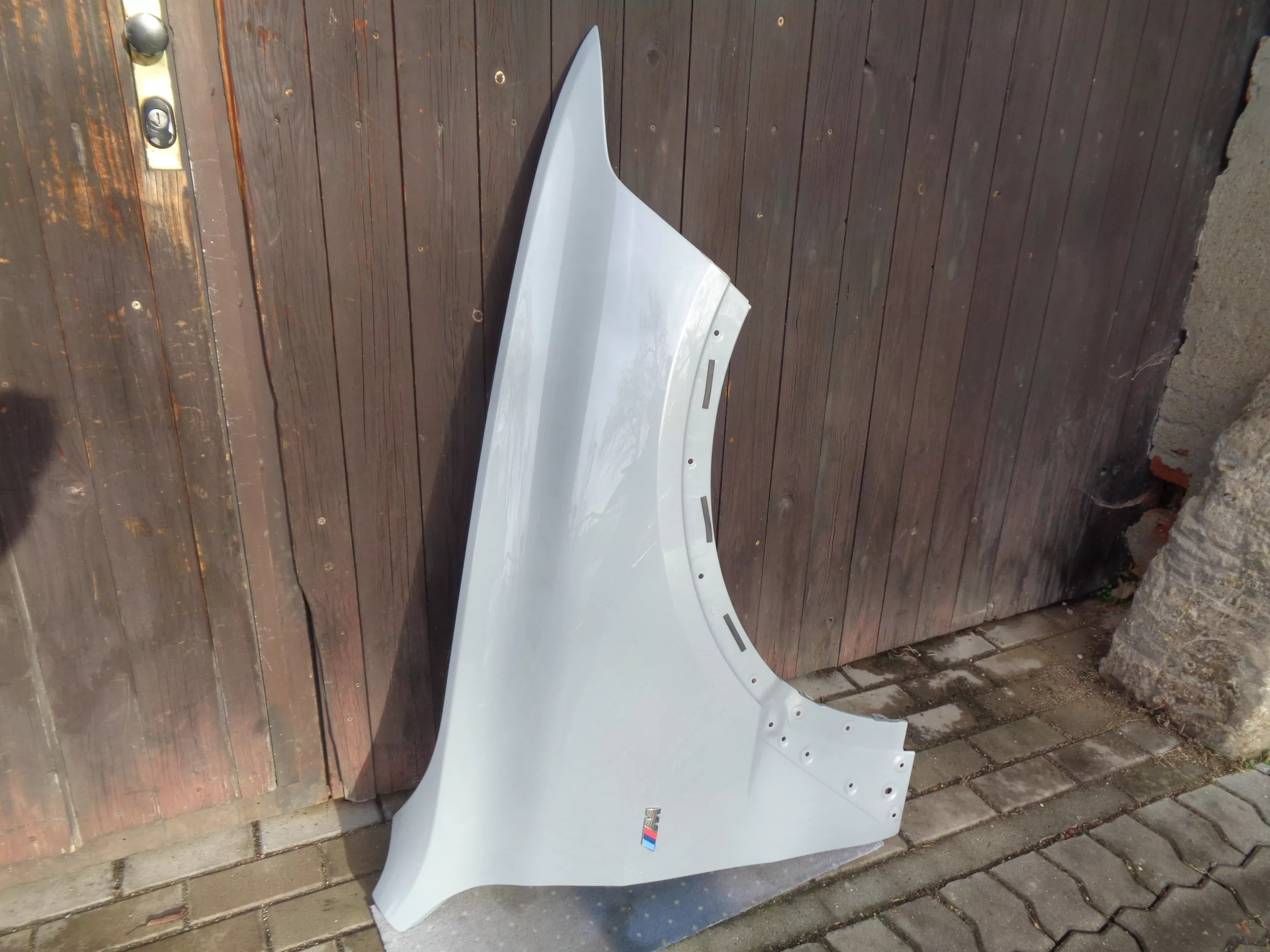 Pravý přední blatník na BMW X7 G07, světle šedý, jen odřený lak na hraně u nárazníku, žádné boule.