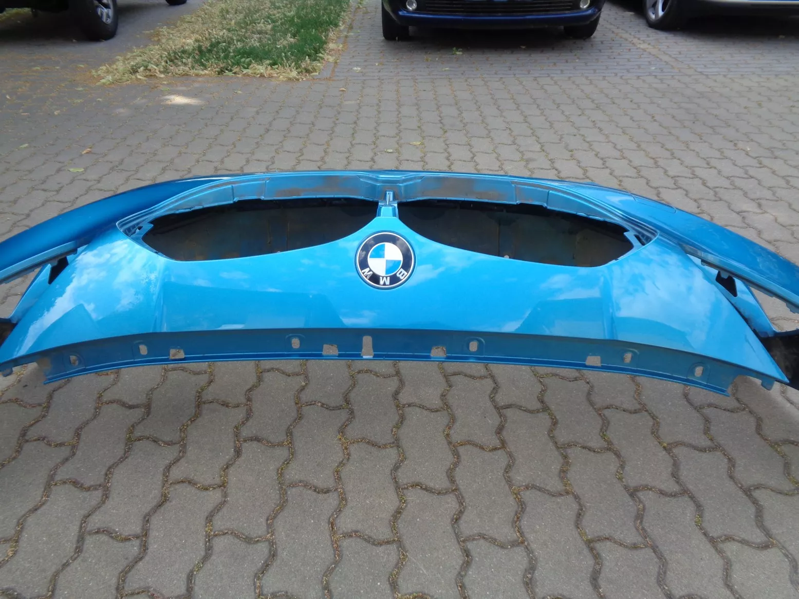 Přední nárazník na BMW 1 F40, verze Lines (Sport / Luxury line), otvory na PDC, azurový, pefektní stav bez škrábanců. Střední mřížka Sport +600kč. Současné originál číslo nárazníku 51115A0B7C9.