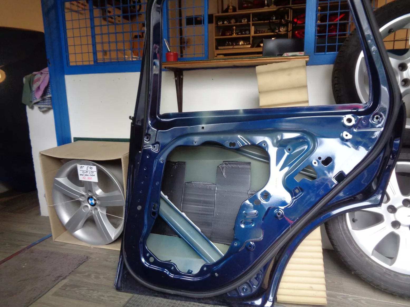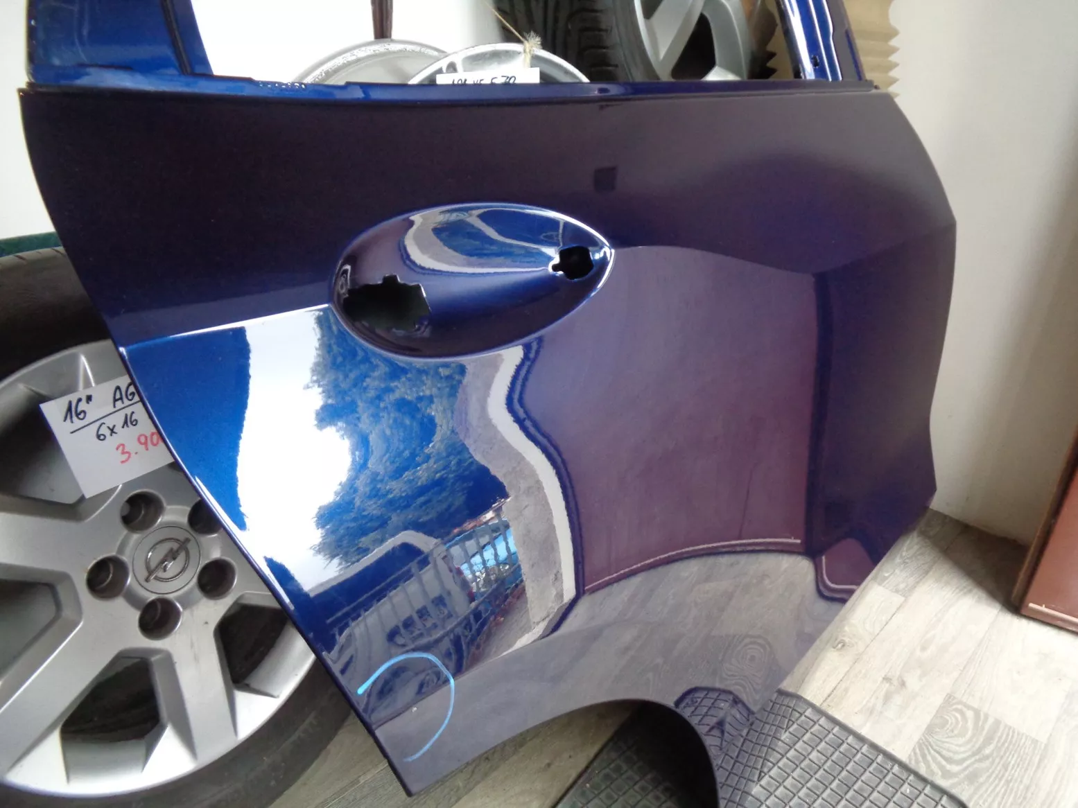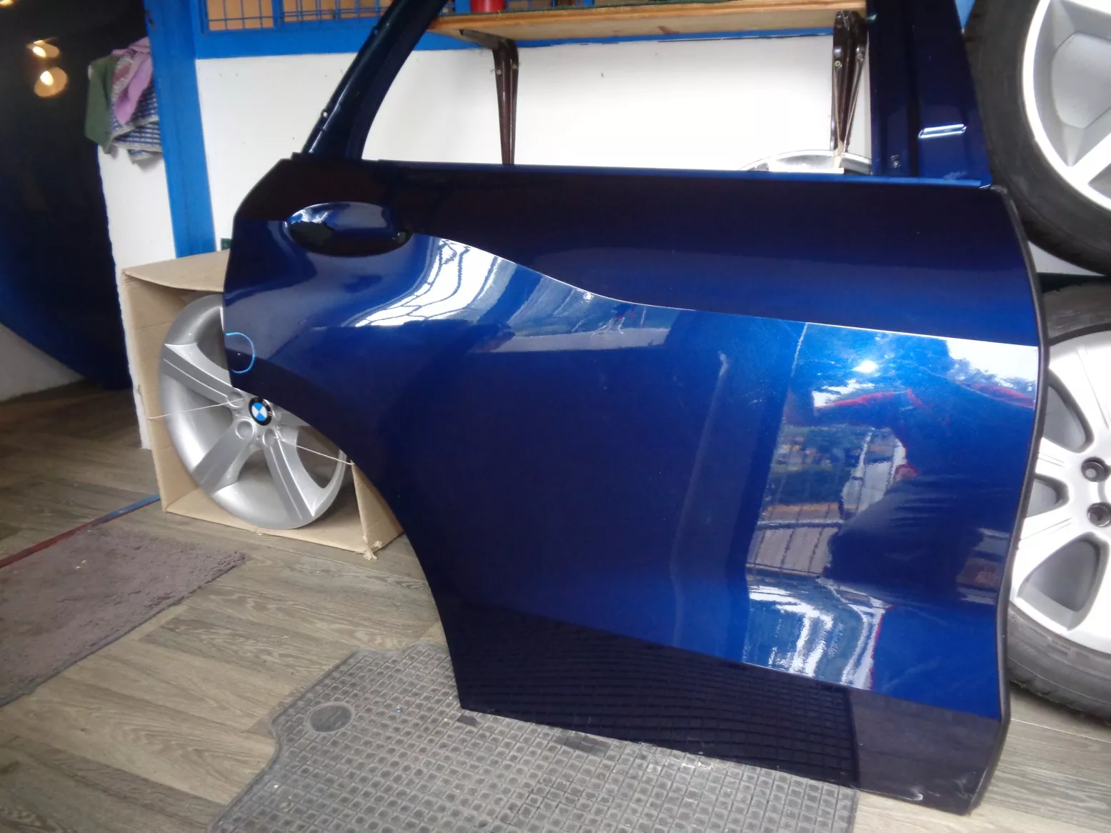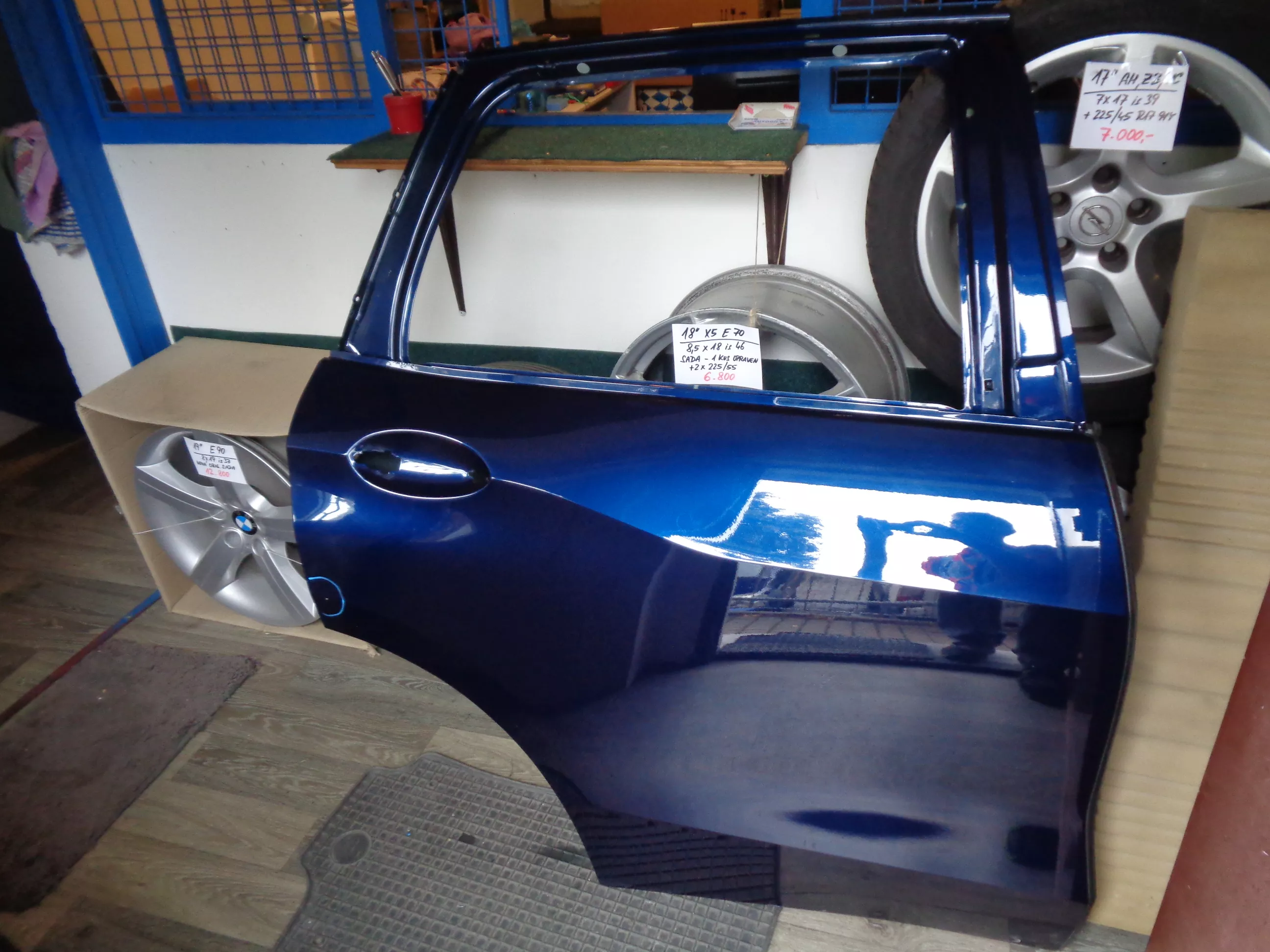 Dveře pravé zadní na BMW X5 G05, modrý, jen nepatrný ďolík nad zadním lemem, jinak pěkný bez škrábanců.
