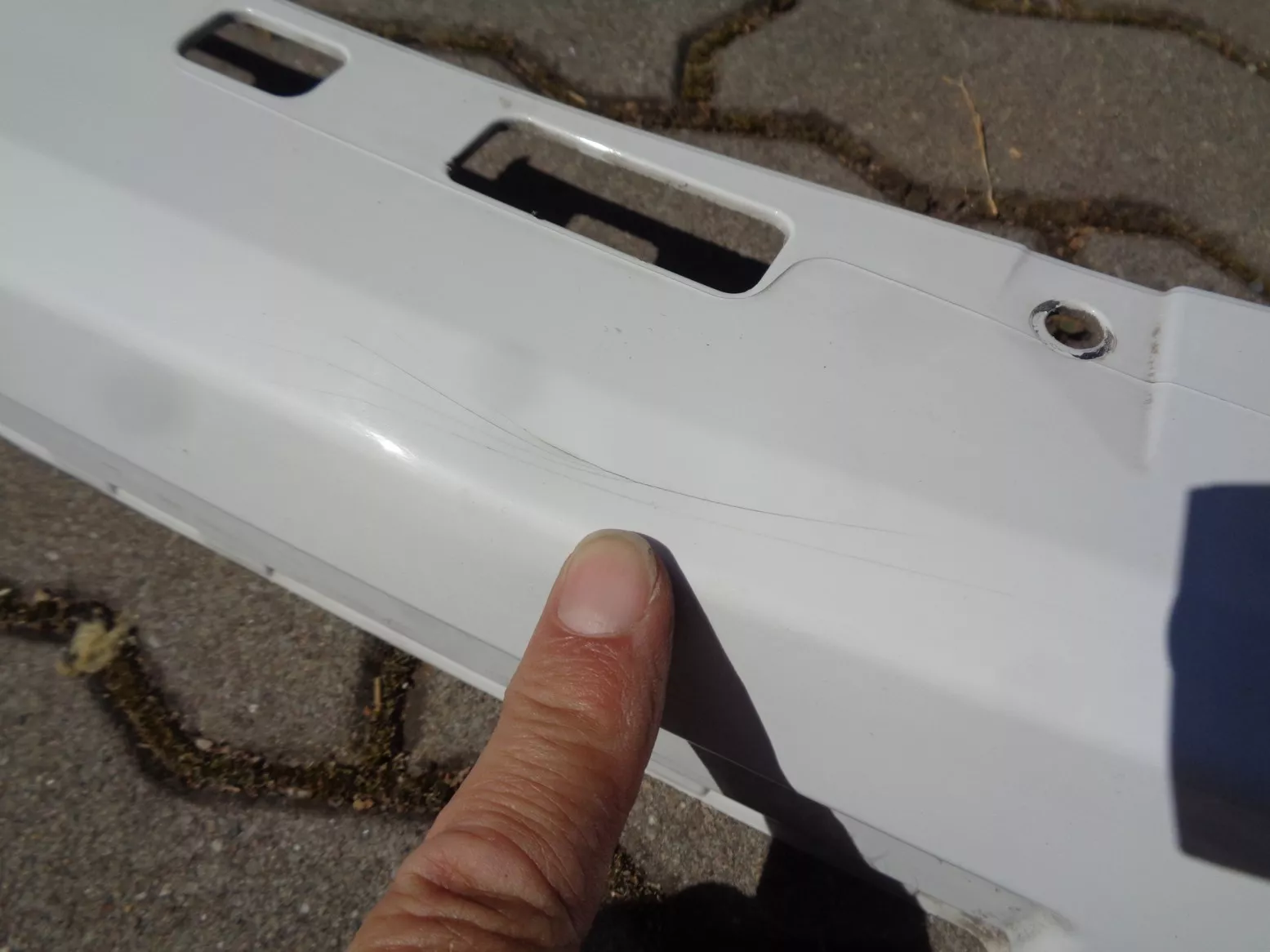 Horní část předního nárazníku na Renault Trafic III, bílý, jen popraskaný lak na horní části.