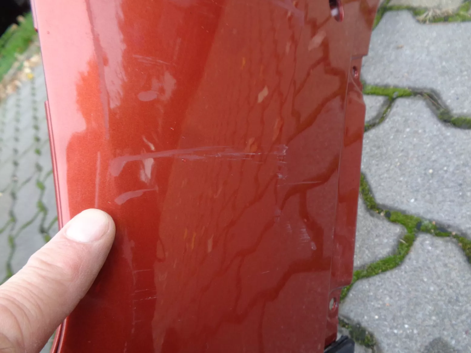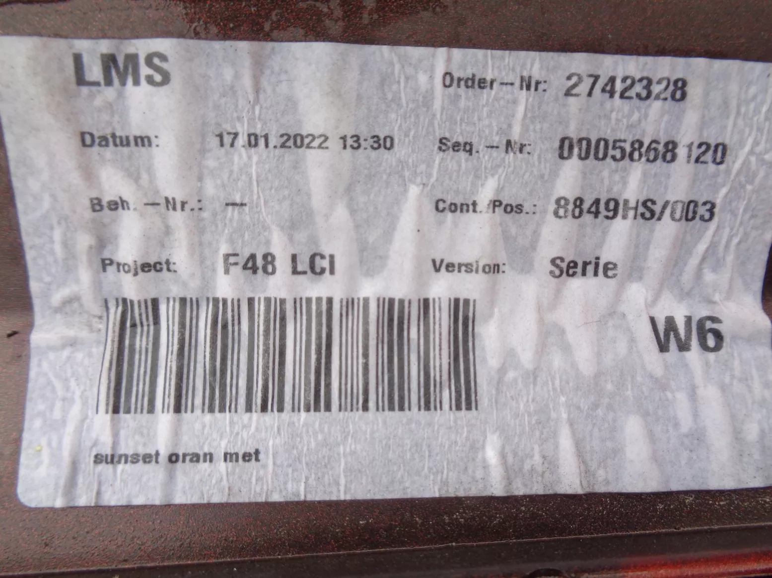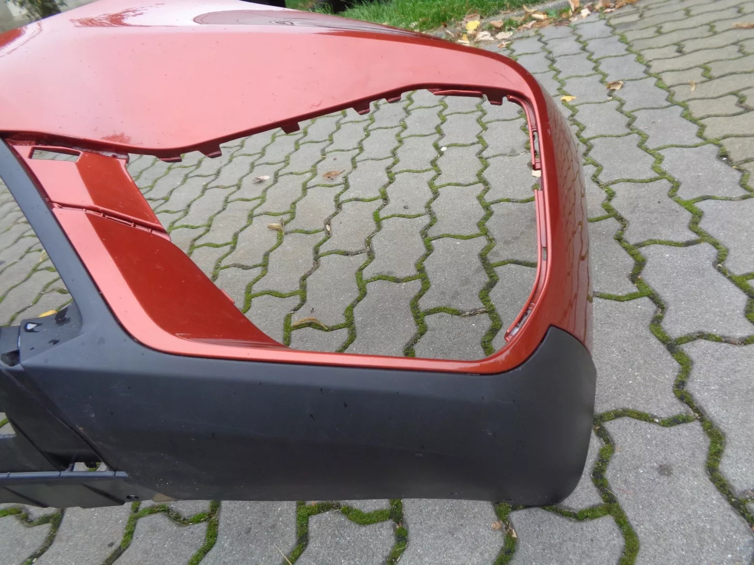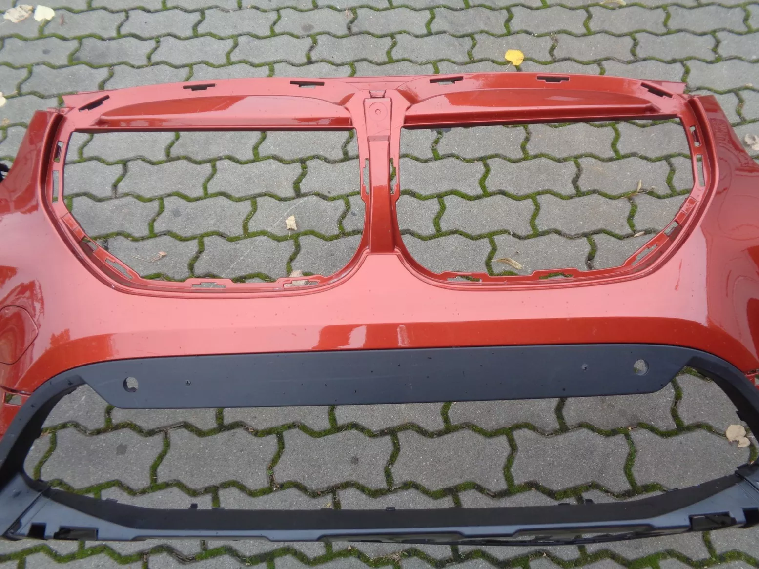 Přední nárazník na BMW X1 F48 facelift, barva Sunset, otvory na PDC a PMA, pěkný stav, jen oděrky laku na levém boku, pouze na lakovaném plastu. Současné originál číslo 51119883249.