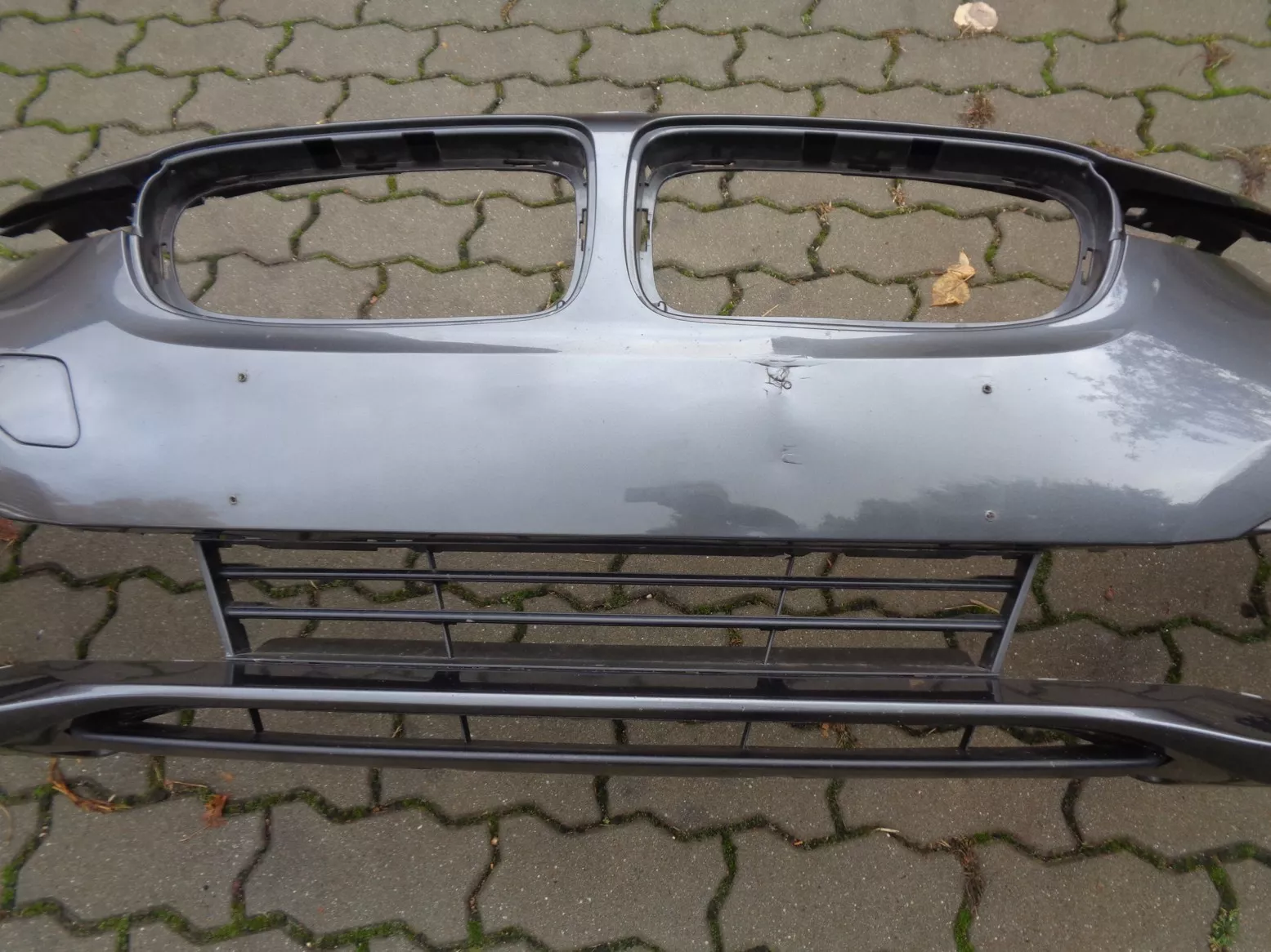 Přední nárazník basis na faceliftový model (15-), bez otvorů na ostřikovače a PDC, šedý, poškozen (boule) pod RZ. Současné originál číslo 51117445093.