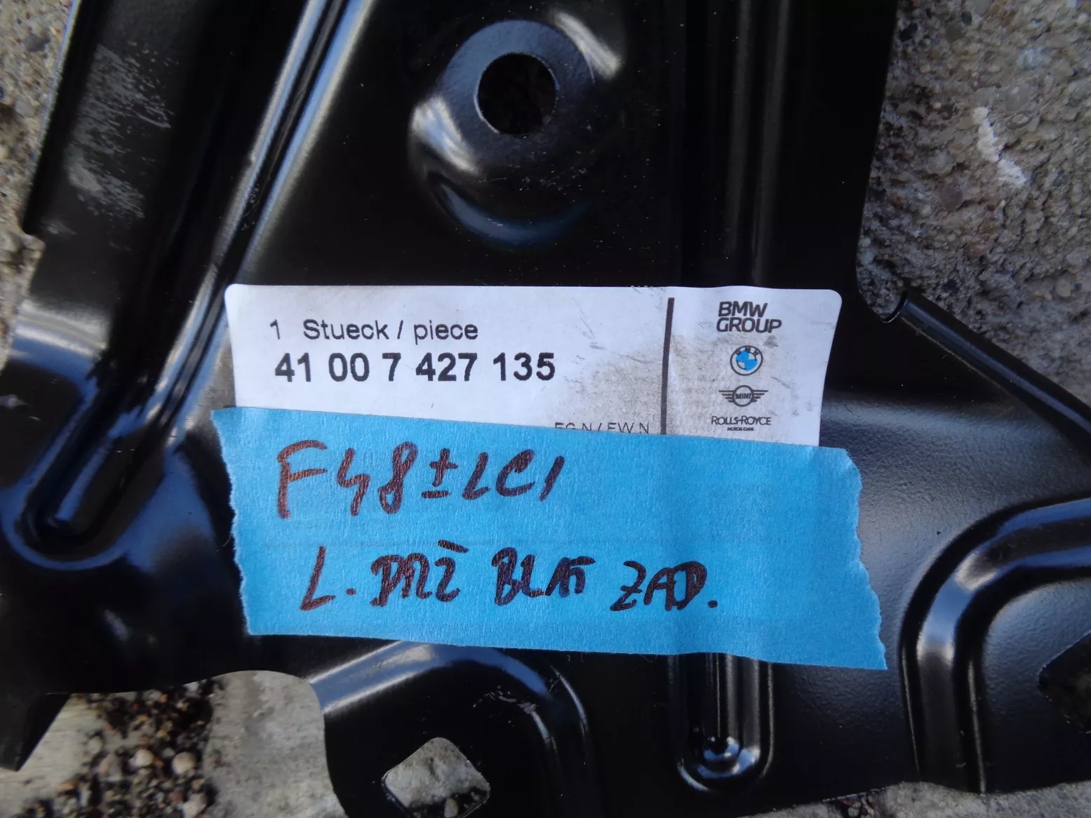 Nové držáky levého blatníku na BMW X1 F48, přední velký 41007427129 za 1200kč, přední malý 41007427127 za 100kč a zadní 41007427135 za 200kč.