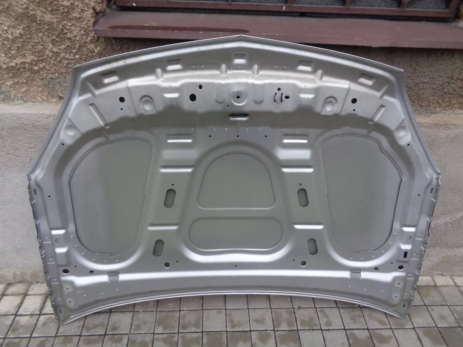 Originál hliníková kapota na opel vectra C facelift (9/05-), stříbrná, poškozena pravá přední hrana.