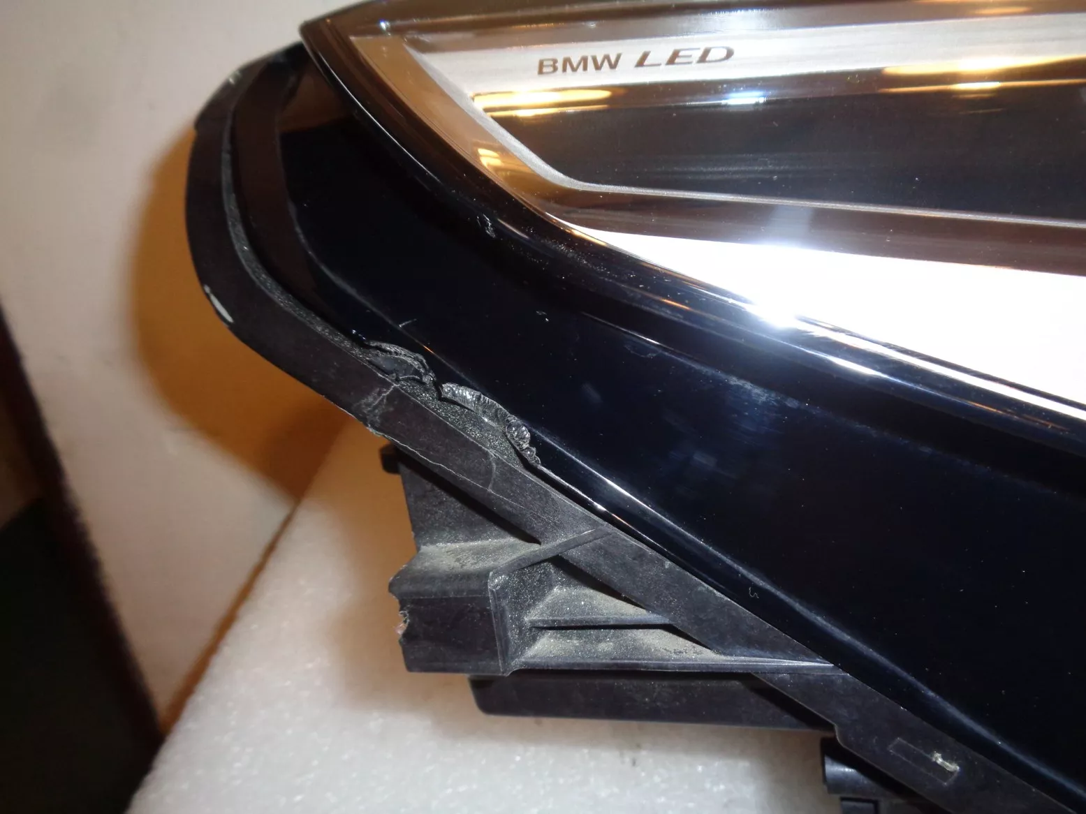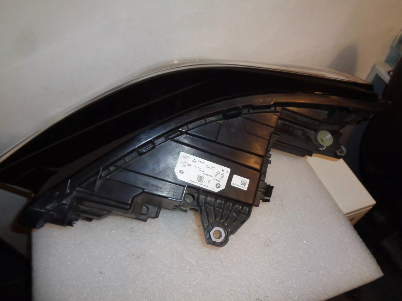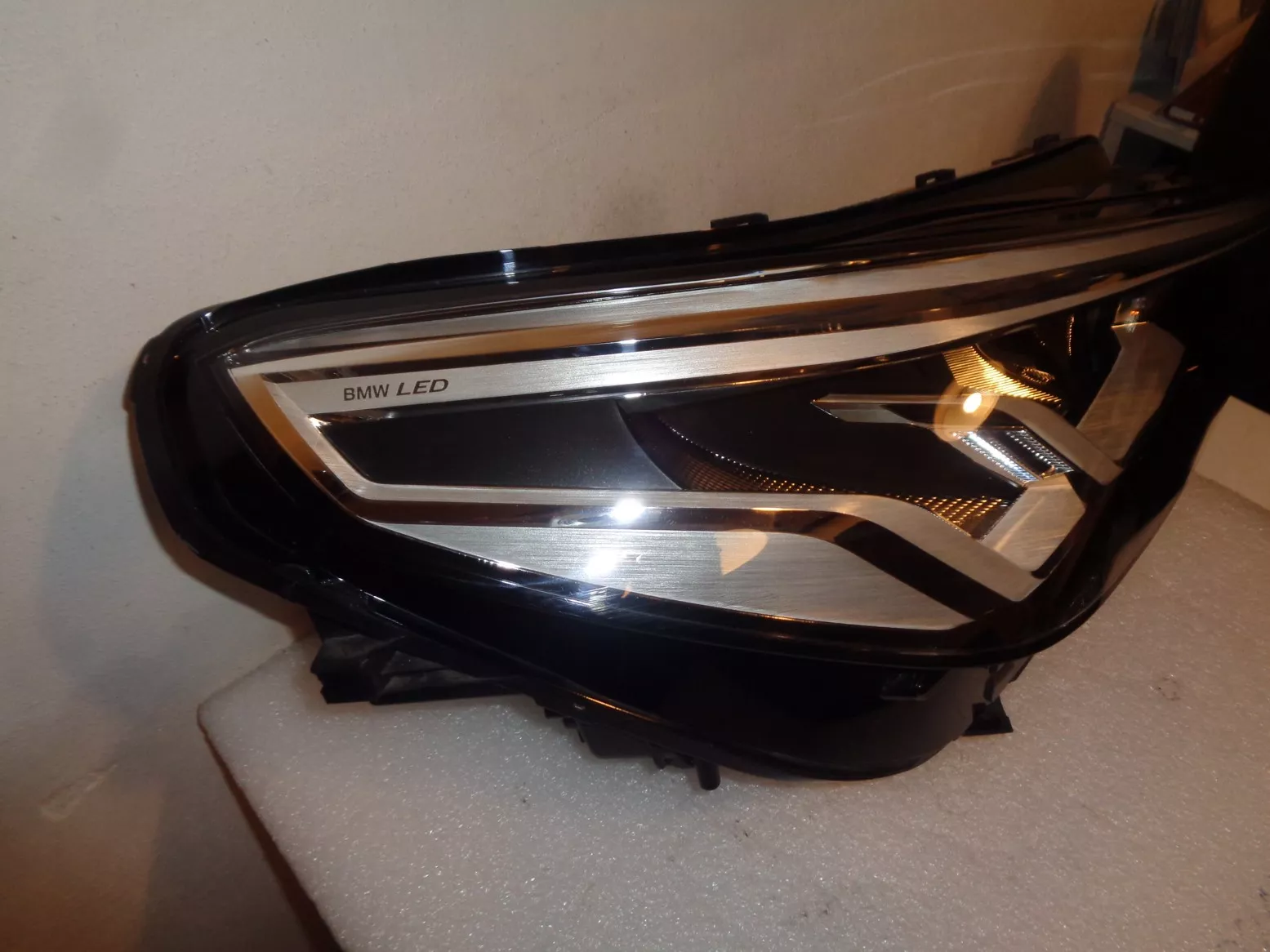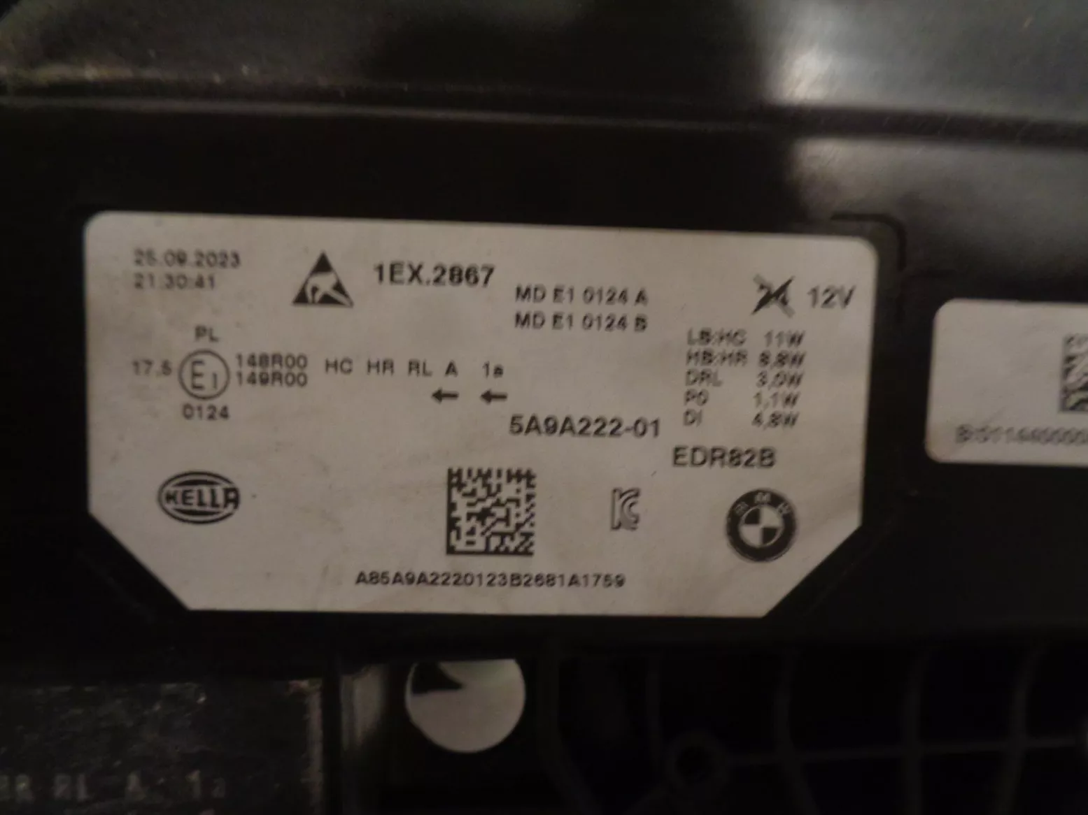 Pravý LED světlo (základní, ne adaptivní) na BMW X1 U11, pěkný stav, jen nepatrné poškození spodního okraje plexi (ukryto pod nárazníkem). Současné originál číslo 63115A643A4.