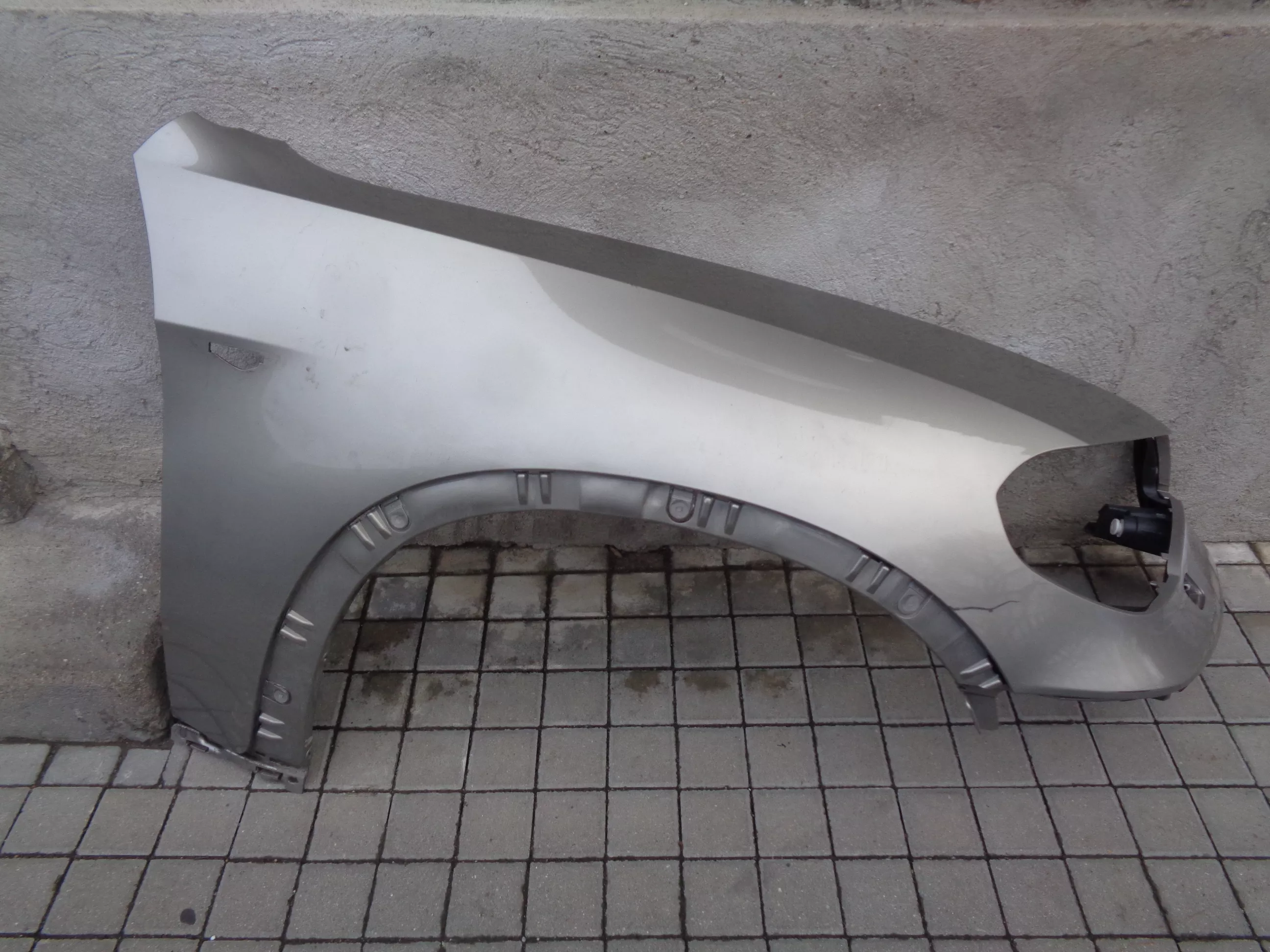 Originál pravý blatník na BMW X5 E70 facelift (7/09-), šedozlatý, pěkný stav, jen škrábnutý lak. Současné originál číslo 51657222996.