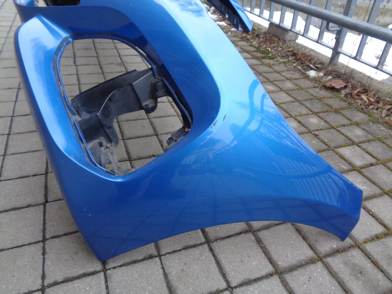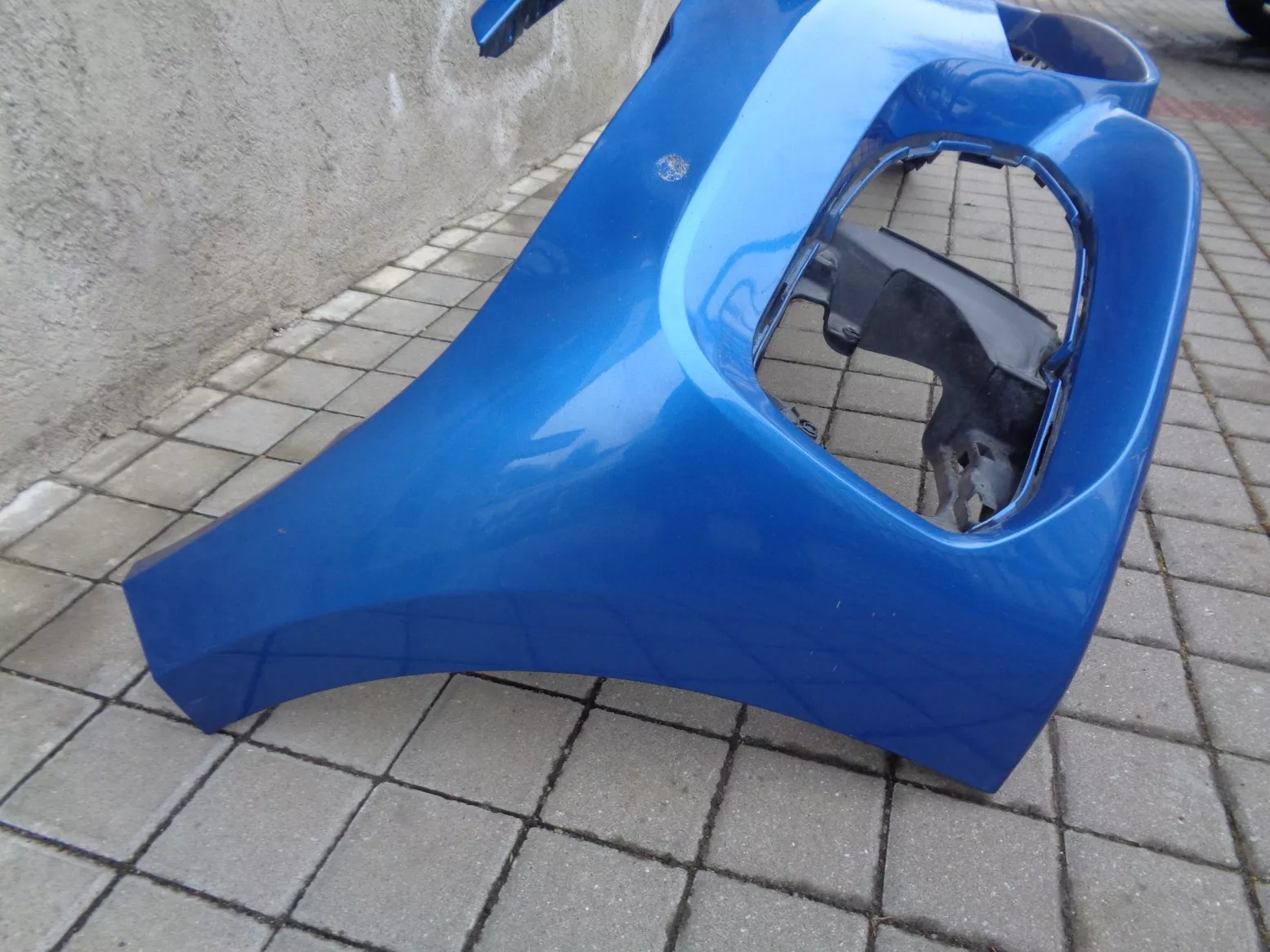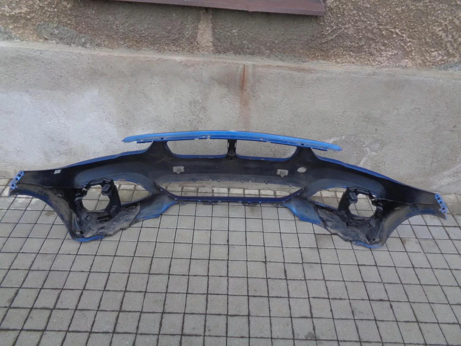 Přední nárazník M-paket na BMW 1 F20 facelift s otvory na PDC, modrý, pěkný stav, jen poškozen lak pod pravým světlem. Současné originál číslo 51118064581.
