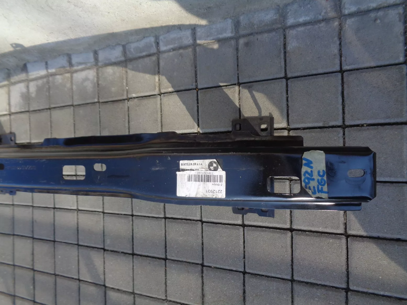 Výztuha předního nárazníku pro modely s aktivní ochranou chodců FGS (lze použít i pro modely bez) na BMW 3 E92/93 facelift, pěkný stav.