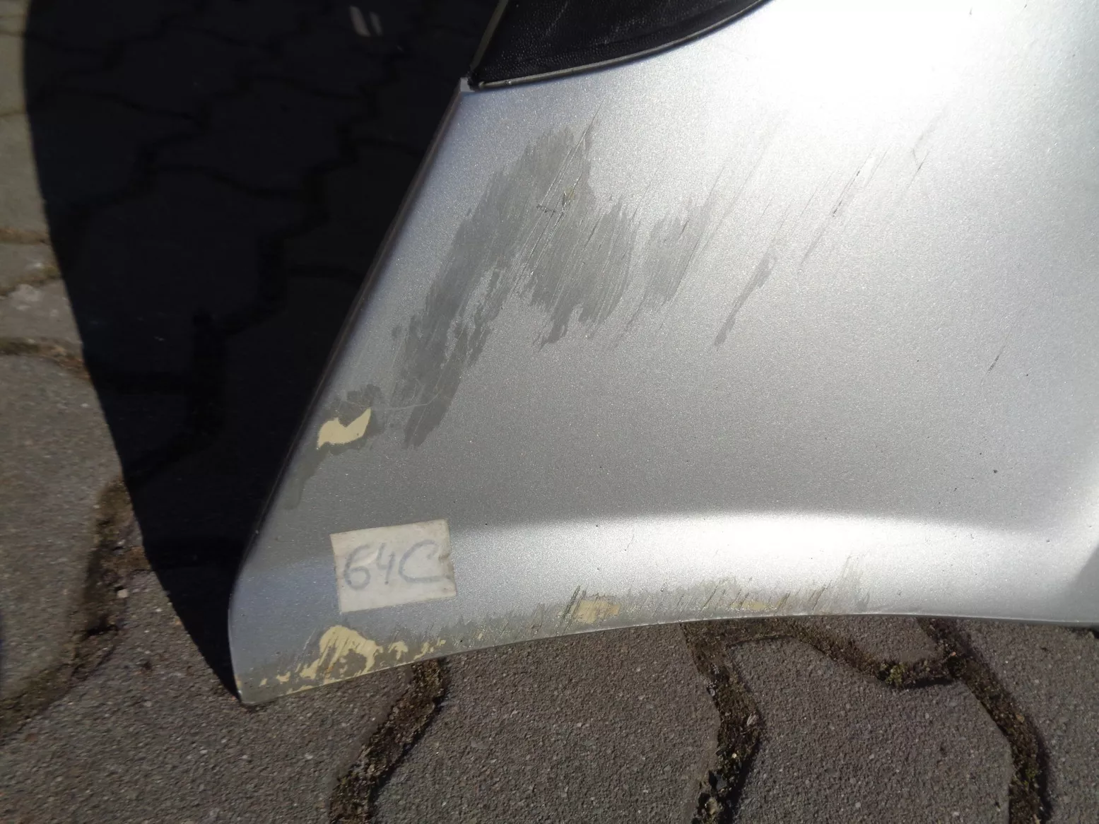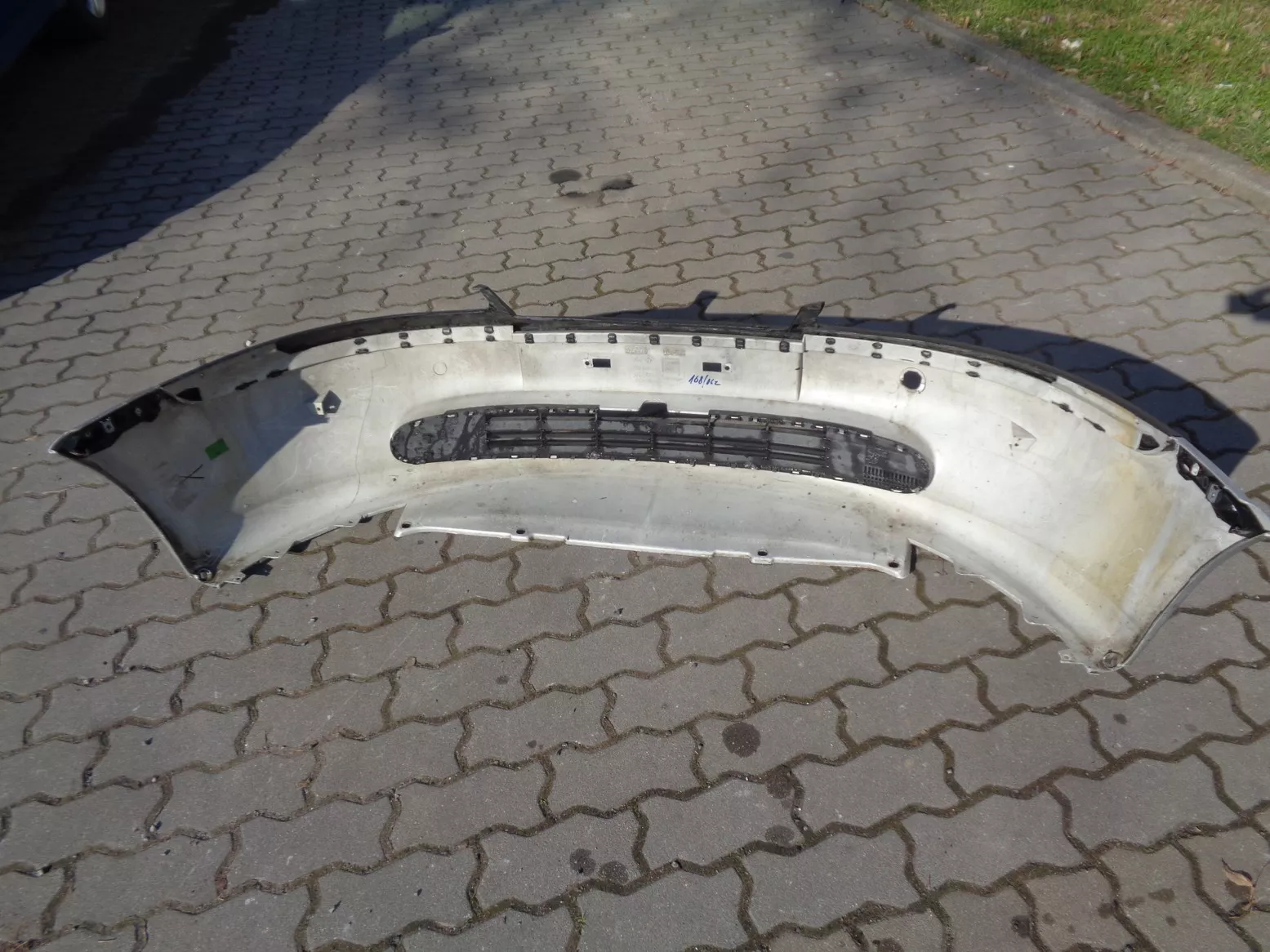 Originál přední nárazník bez otvorů na mlhovky pro opel vectra B, stříbrný, odřený levý bok.