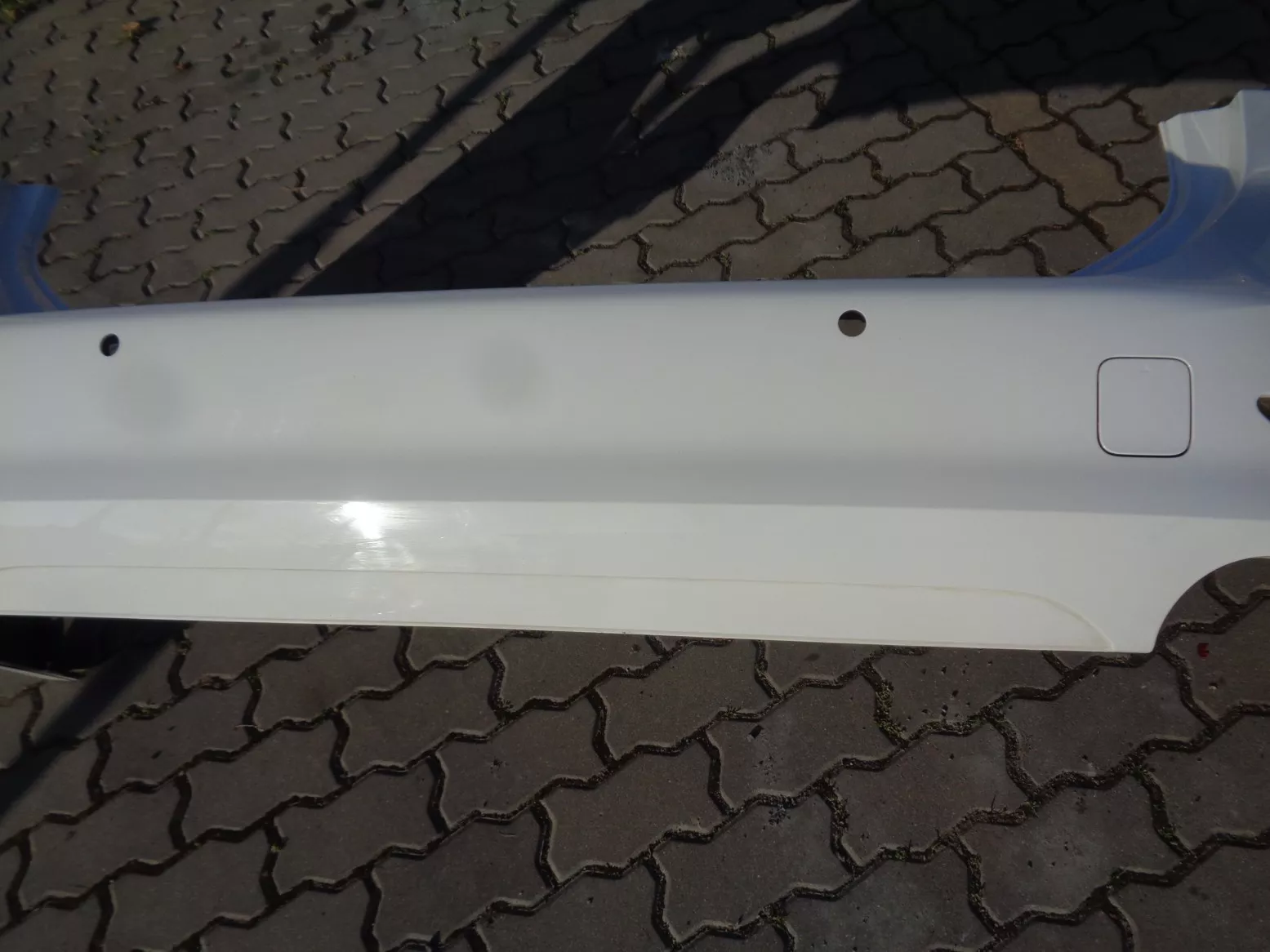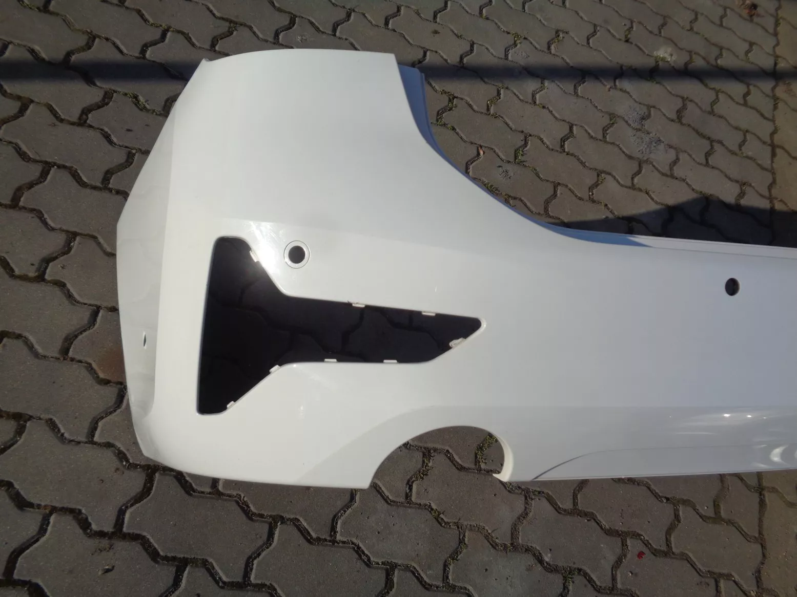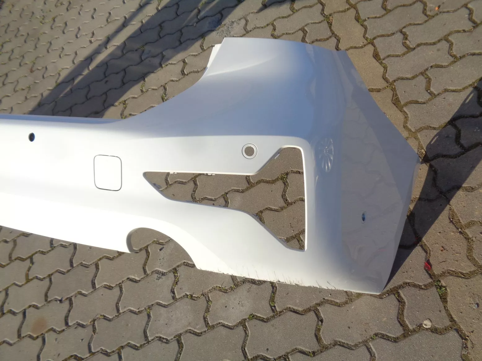 Zadní nárazník na BMW 3 touring G21, verze Basis, otvory na PMA, bílý, odřená pravá spodní hrana. Současné orig. číslo 51128493967.