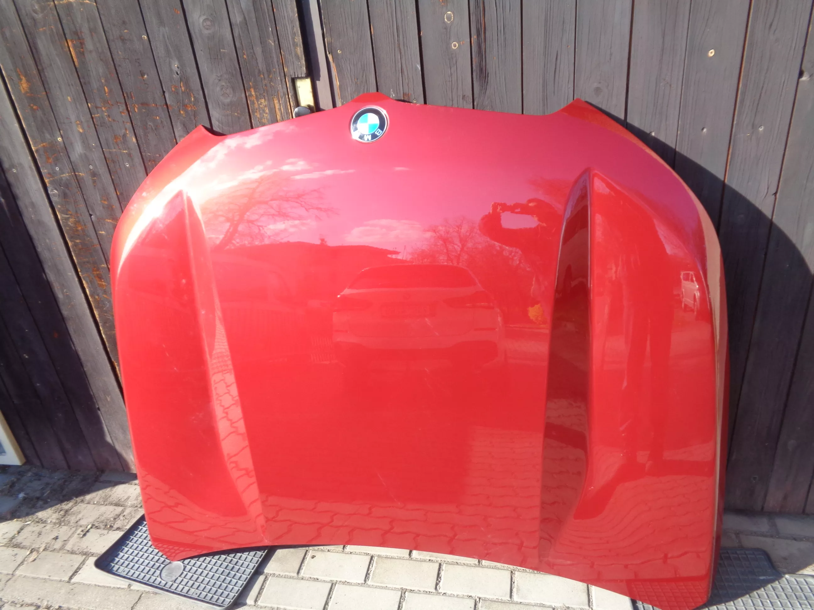 Originál ALU kapota na BMW X1 U11, červená metalíza, perfektní TOP stav bez jedinného škrábnutí!