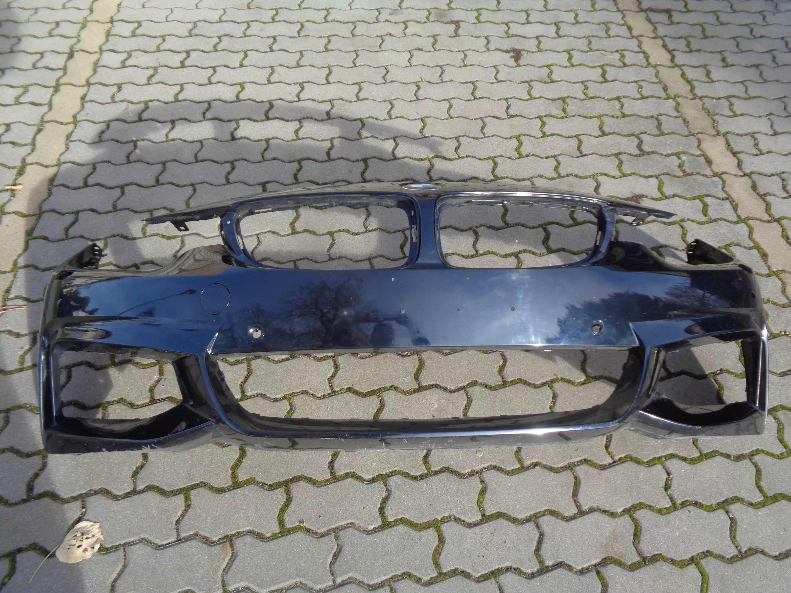 BMW 4 coupé/cabrio F32/33/36 přední nárazník M-paket, otvory na ostřikovače a PMA, barva Carbonschwarz, pouze odřené spodní hrany, jinak pěkný, žádný praskliny ani boule. Současné originál číslo 51118060881.