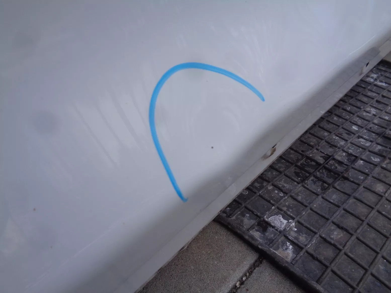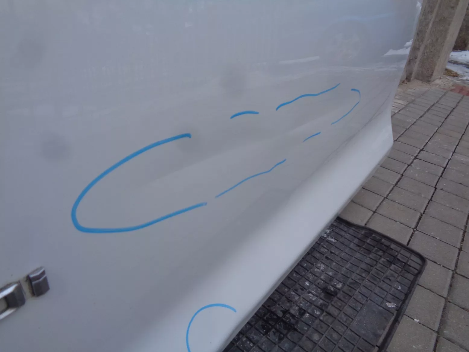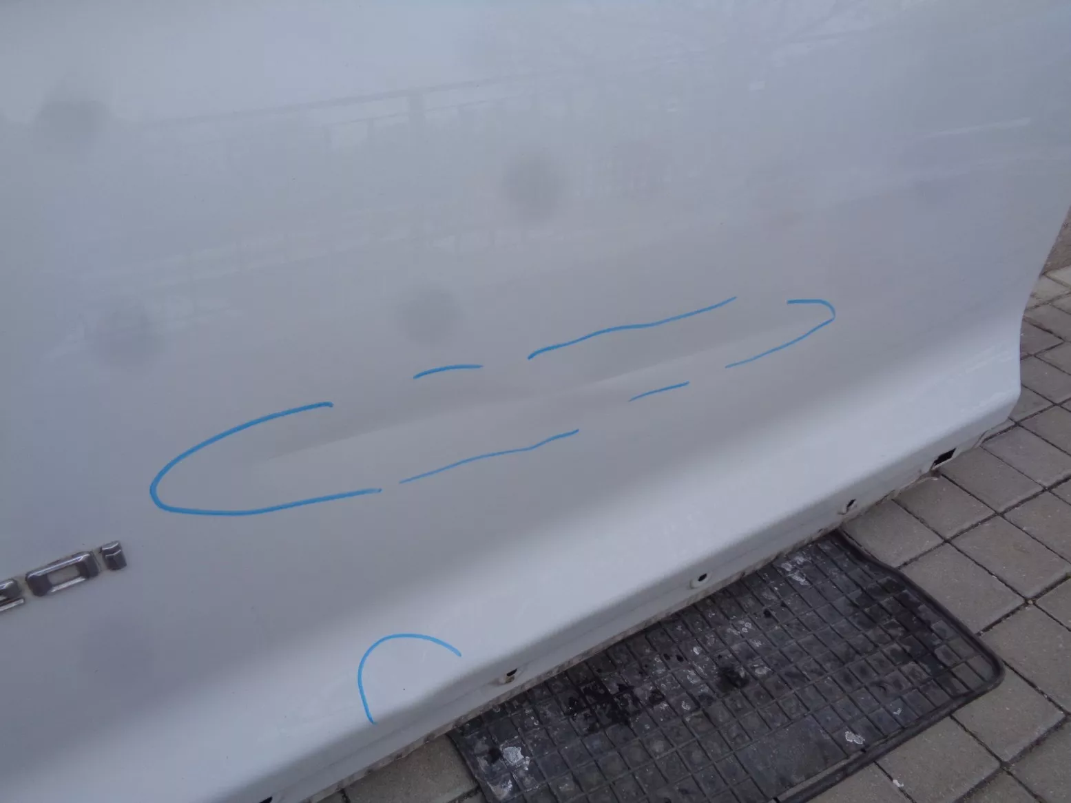 Levé přední dveře na BMW X3 F25, bílý, rýha uprostřed a malá boule dole.