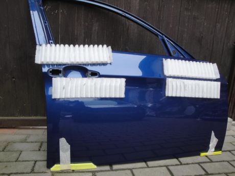 Pravé přední dveře na BMW 3 E90, modrý - montegoblau, pěkný, jen nepatrná koroze u otvoru na elektriku a omezovač.